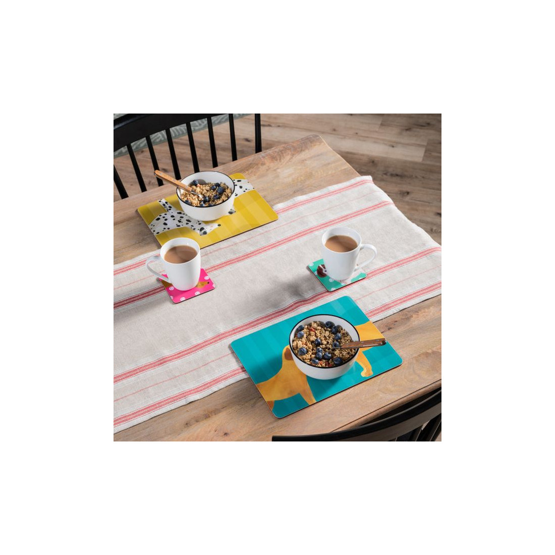 Zaprojektowane w Wielkiej Brytanii podkładki korkowe premium marki Creative Tops łączą funkcjonalność z estetyką, chroniąc powierzchnie i dodając wyjątkowego charakteru każdemu nakryciu stołu. Zabawny nadruk z motywem psów wprowadza ciepły, domowy akcent do jadalni, kuchni lub salonu. Dzięki odporności na temperatury do 120°C oraz właściwościom plamoodpornym, podkładki pozostają w doskonałym stanie przez długi czas.
