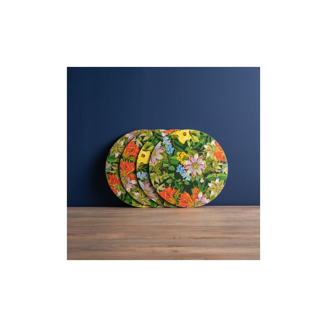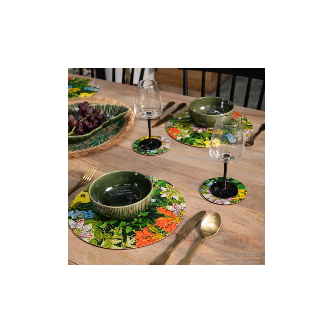 Zaprojektowane w Wielkiej Brytanii okrągłe podkładki korkowe marki Creative Tops łączą funkcjonalność z estetyką, chroniąc powierzchnie i dodając elegancji każdemu nakryciu stołu. Ich żywy, kwiatowy nadruk wprowadza odrobinę koloru do jadalni, kuchni lub salonu. Doskonale sprawdzają się pod talerze, miski i naczynia do serwowania, zapewniając skuteczną izolację cieplną. Dzięki odporności na temperatury do 120°C oraz właściwościom plamoodpornym, podkładki pozostają w idealnym stanie przez długi czas.