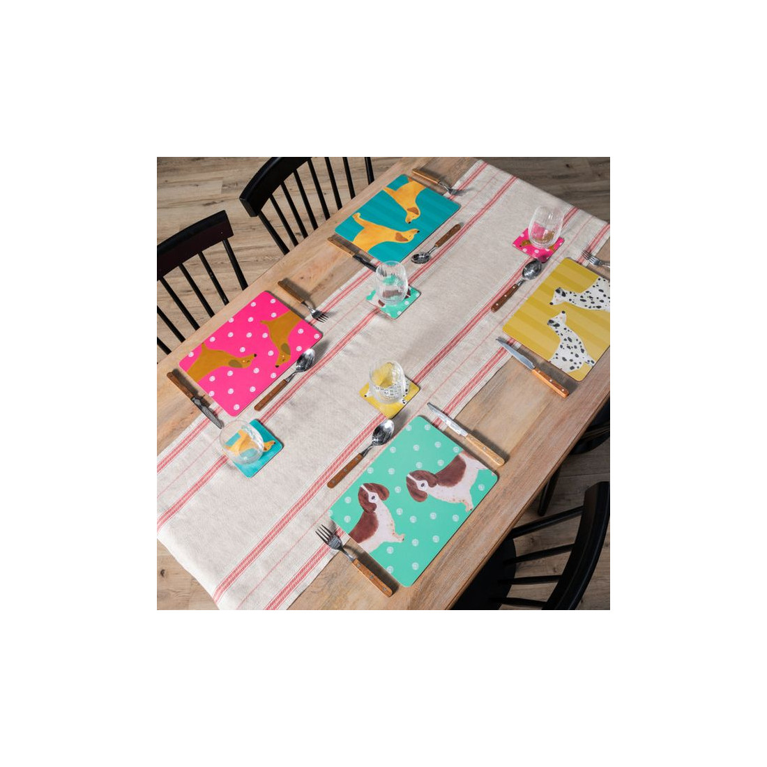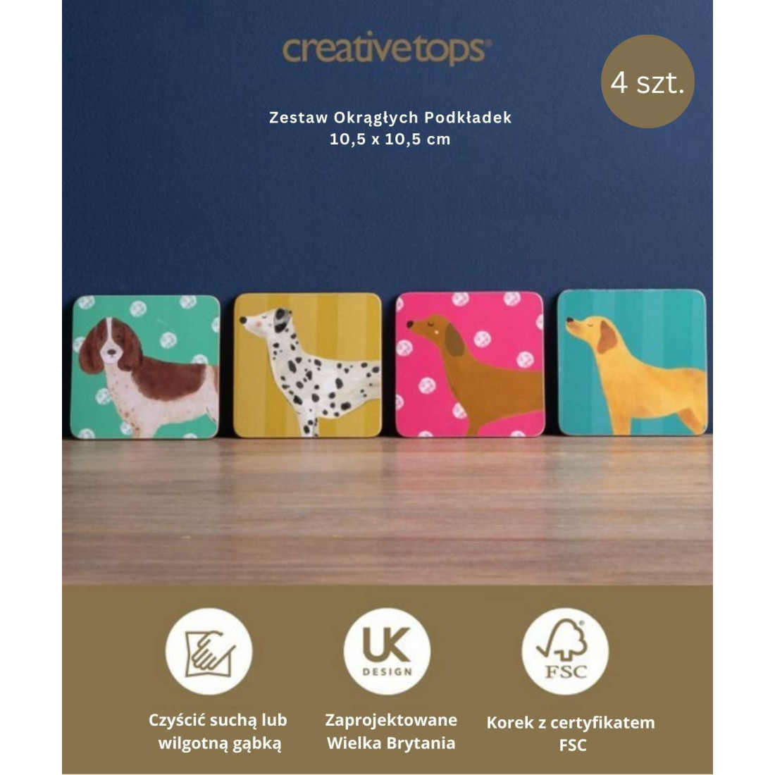 Zaprojektowane w Wielkiej Brytanii podkładki korkowe małe marki Creative Tops łączą funkcjonalność z estetyką, chroniąc powierzchnie i dodając wyjątkowego charakteru każdemu nakryciu stołu. Zabawny nadruk z motywem psów wprowadza ciepły, domowy akcent do jadalni, kuchni lub salonu. Dzięki odporności na temperatury do 120°C oraz właściwościom plamoodpornym, podkładki pozostają w doskonałym stanie przez długi czas.