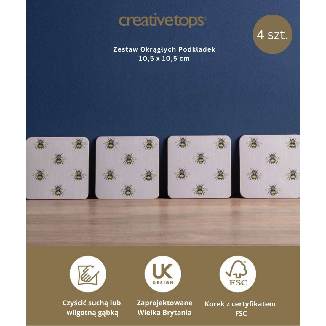 Pszczoły Podkładki Małe Premium – 4 szt.