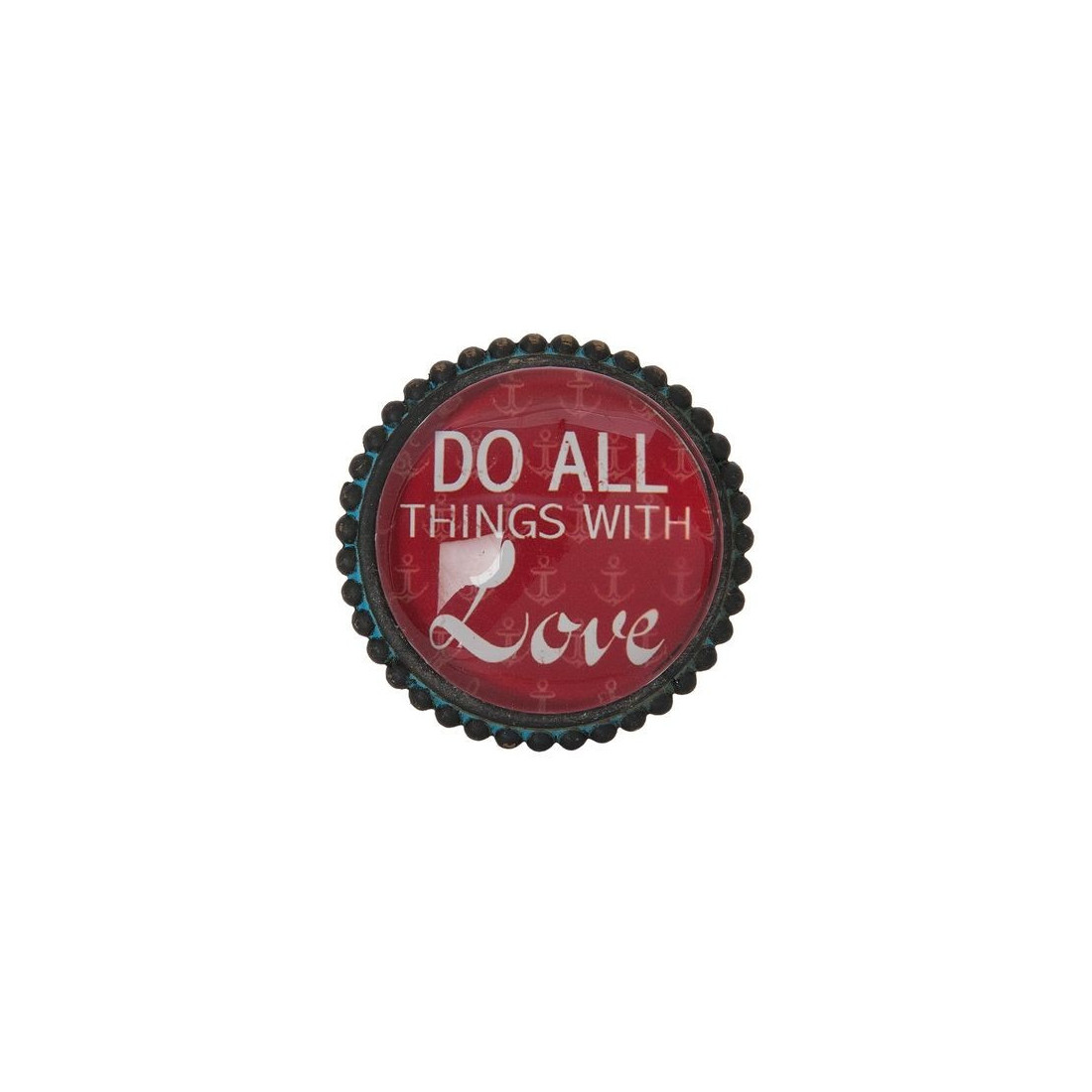 Wspaniała, okrągła gałka ceramiczna czerwona ze stylizowanym napisem: “Do All Things With Love” marki Clayre & Eef do szuflad i drzwi szafek o klasycznej, ciekawej linii wzorniczej. Odpowiednio wyprofilowana część chwytna gałki doskonale sprawdza się podczas codziennej eksploatacji. Gałka wykonana jest z wysokiej jakości ceramiki, która gwarantuje trwałość i atrakcyjny wygląd na długie lata eksploatacji.