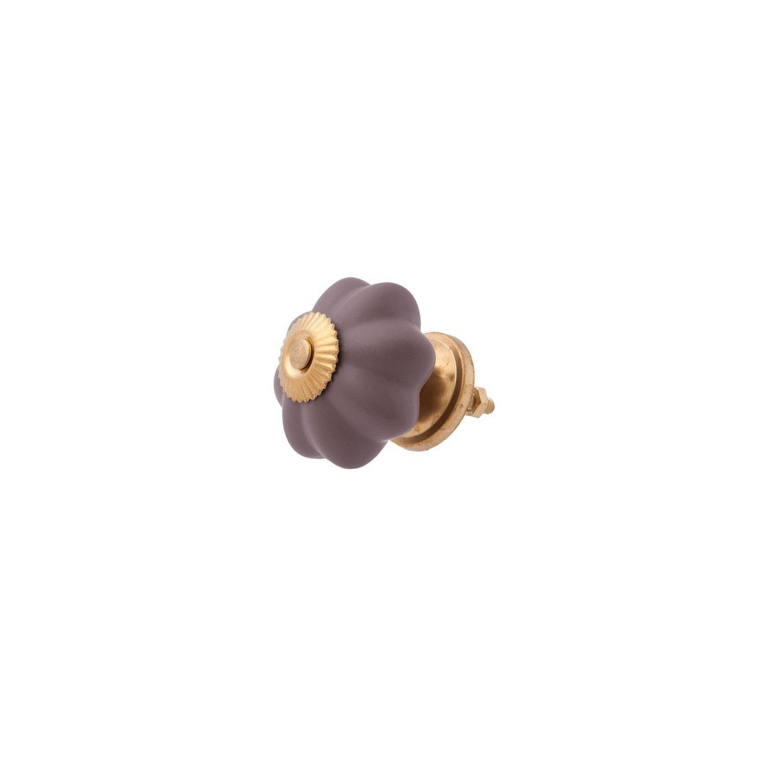 Okrągła gałka ceramiczna w kolorze fiołkowym z ozdobną złotą rozetką marki Clayre & Eef do szuflad i drzwi szafek o nowoczesnej, ciekawej linii wzorniczej. Odpowiednio wyprofilowana część chwytna gałki doskonale sprawdza się podczas codziennej eksploatacji. Gałka wykonana jest z wysokiej jakości ceramiki, która gwarantuje trwałość i atrakcyjny wygląd na długie lata eksploatacji.