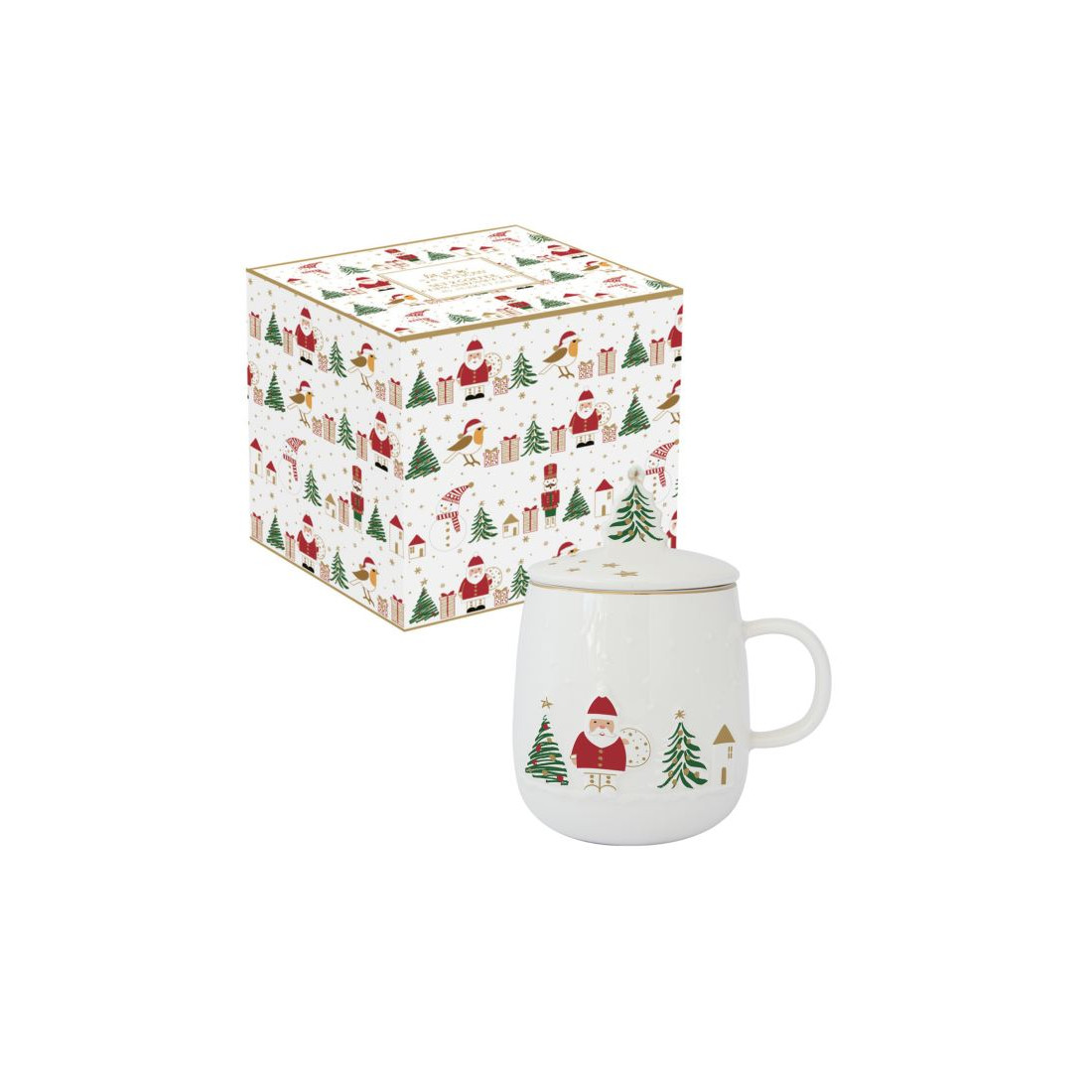 Kubek porcelanowy marki Easy Life to idealny dodatek do świątecznych chwil, który możesz podarować sobie lub bliskiej osobie. Wyposażony w efektowną pokrywkę z choinką oraz filtr ze stali nierdzewnej, pozwala liściom herbaty w pełni uwolnić ich aromat. Wykonany z porcelany najwyższej jakości, łączy elegancję z trwałością, stając się wyjątkowym elementem świątecznej zastawy i doskonałym prezentem.