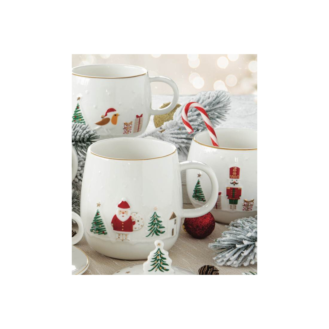 Magia Świąt Mikołaj Kubek Porcelanowy z Zaprzaczem