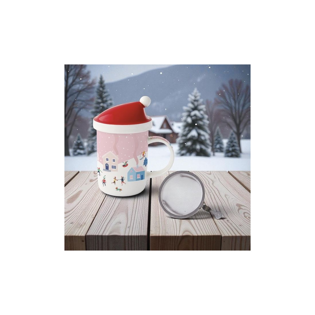 Kubek z pokrywką i metalowym zaparzaczem 370 ml w pudełku