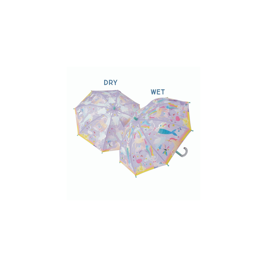Zapewnij swojemu dziecku niezapomniane przygody podczas spacerów w deszczu dzięki magicznej parasolce zmieniającej kolory! Za każdym razem, gdy deszcz zaczyna padać, białe kształty na parasolce magicznie wypełniają się kolorowymi motywami krainy fantazji, rozweselając nawet najbardziej pochmurny dzień. Gdy parasolka wysycha, kolory wracają do bieli. W komplecie znajduje się wygodne zapięcie na rzep, które zabezpiecza złożoną parasolkę.