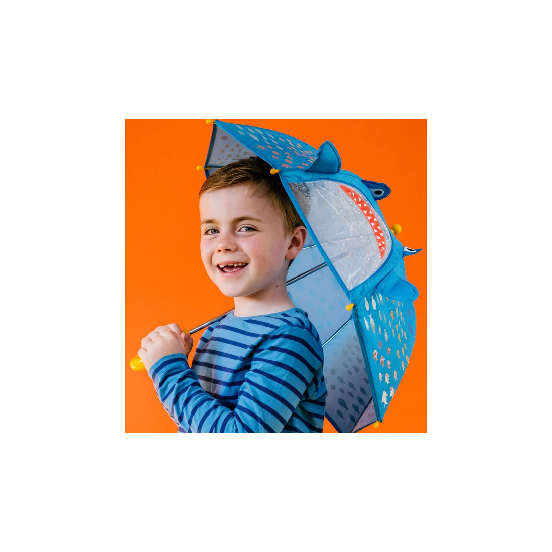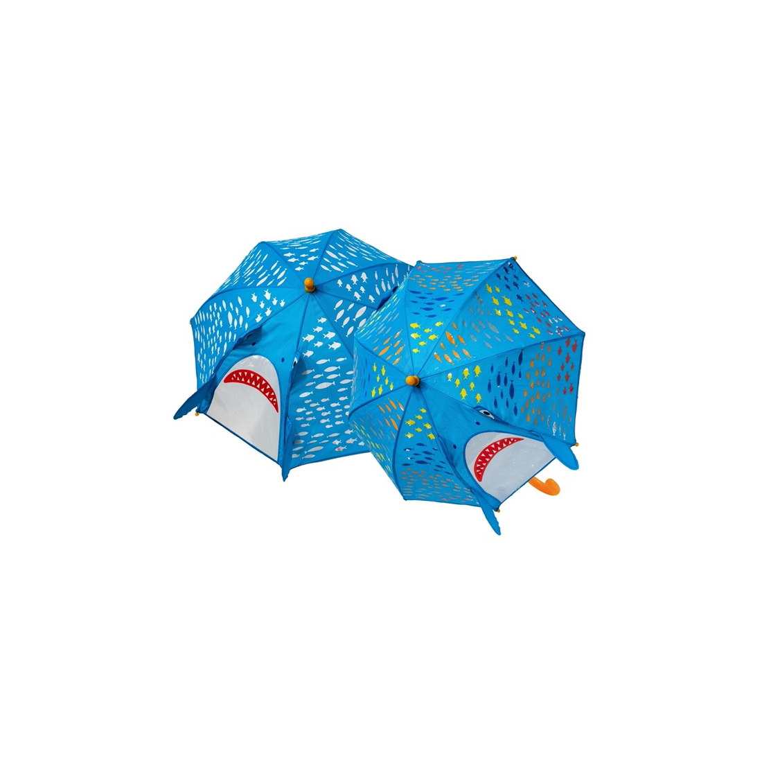 Niezwykła parasolka zmieniająca kolory, wyposażona w zabawne elementy 3D i okienko do wyglądania. Zmieniające się kolory parasolki sprawią, że dzieci będą uwielbiały spacery na deszczu. Czasza parasolki przedstawia rekina, którego buźka tworzy okienko pozwalające oglądać świat. W komplecie znajduje się wygodne zapięcie na rzep do zabezpieczenia złożonej parasolki.
