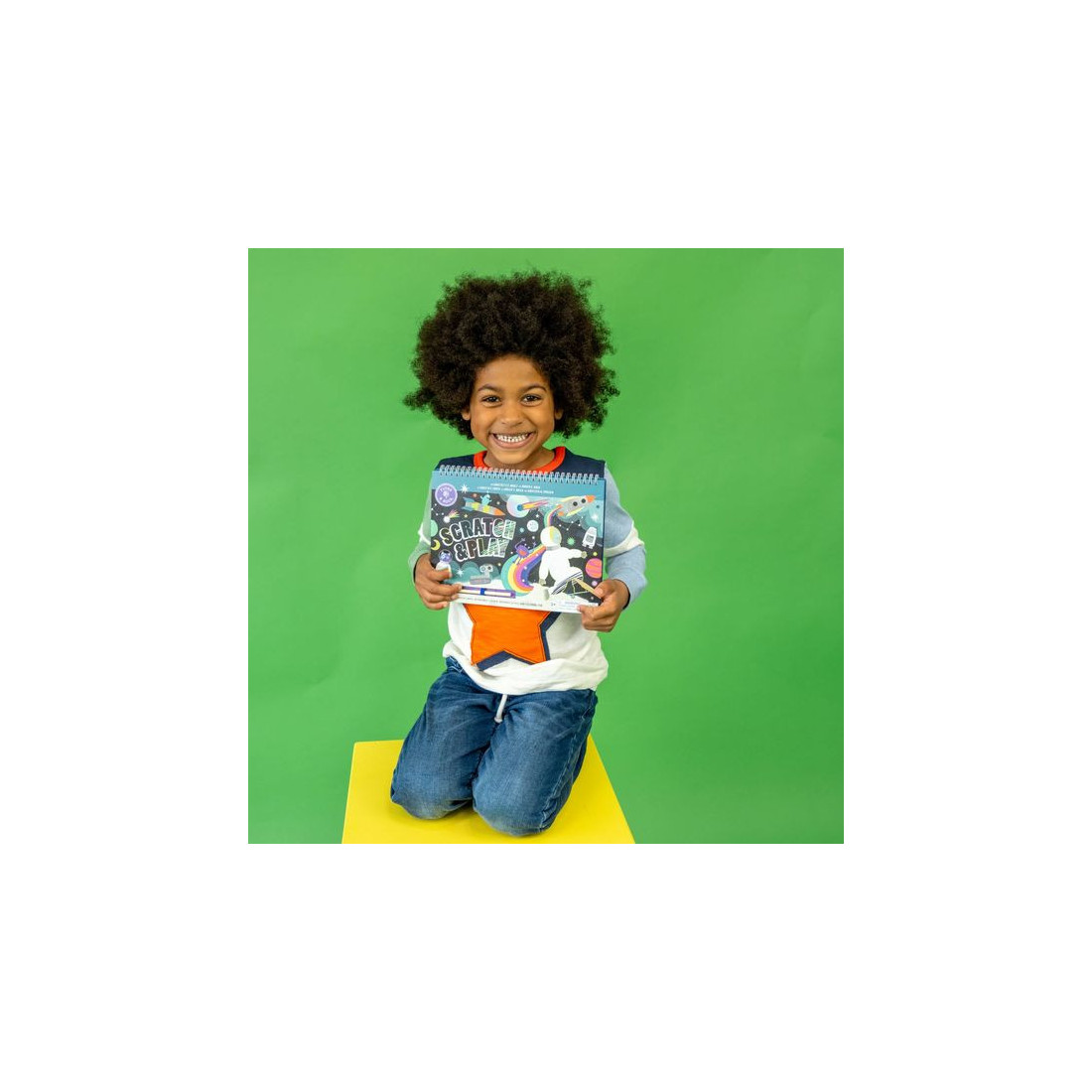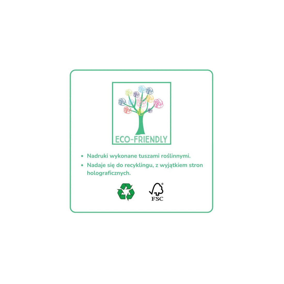 Wspaniała zdrapywanka z rysikiem Kosmos to zestaw zawierający 10 kart ze wspaniałymi ilustracjami, czekającymi na odkrycie. Za pomocą drewnianego rysika można rysować na kartach, zdrapując warstwę czarnej farby i odkrywając kolorowy świat z motywem dinozaurów. Dołączony arkusz z szablonami można wyjąć, umieścić na dowolnej karcie i zdrapać kształt rakiety, kosmitów, latających spodków i nie tylko. Ta zdrapywanka to świetny sposób na spędzenie wielu godzin kreatywnej zabawy, a także doskonalenie koncentracji, dokładności i precyzji.