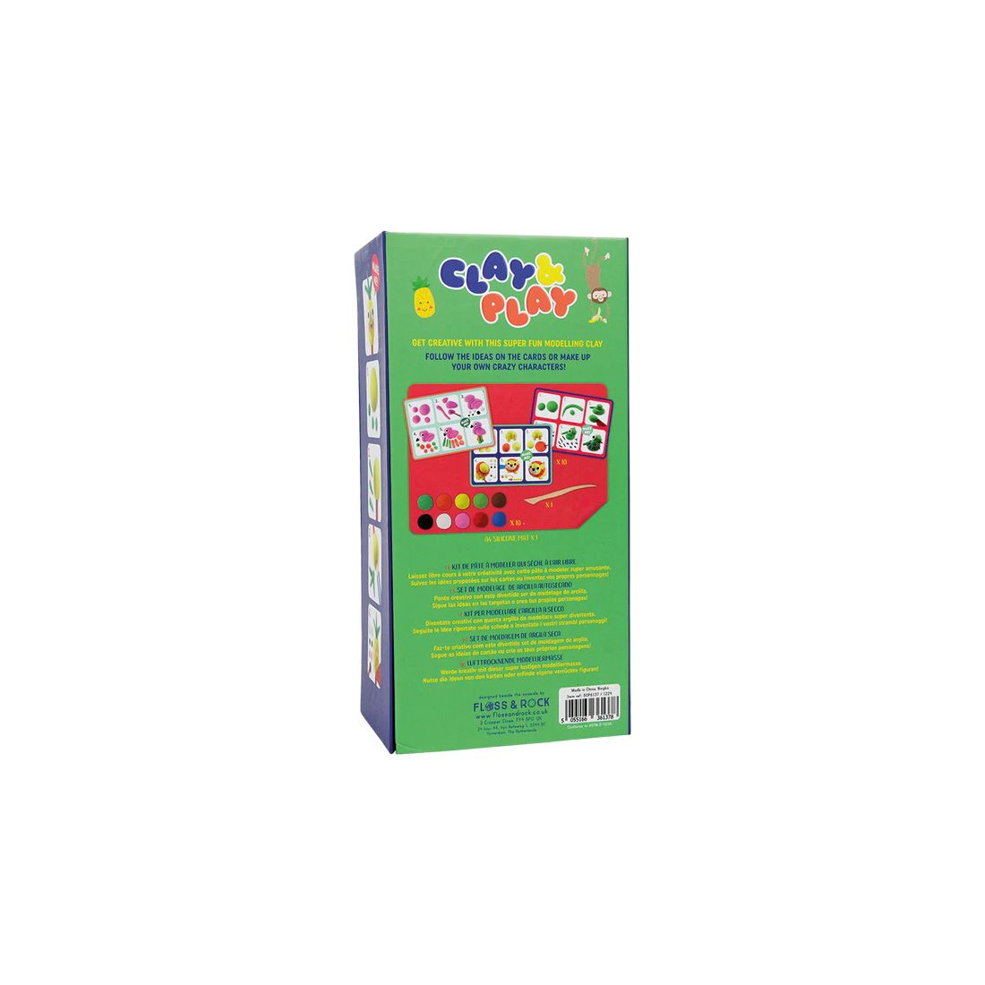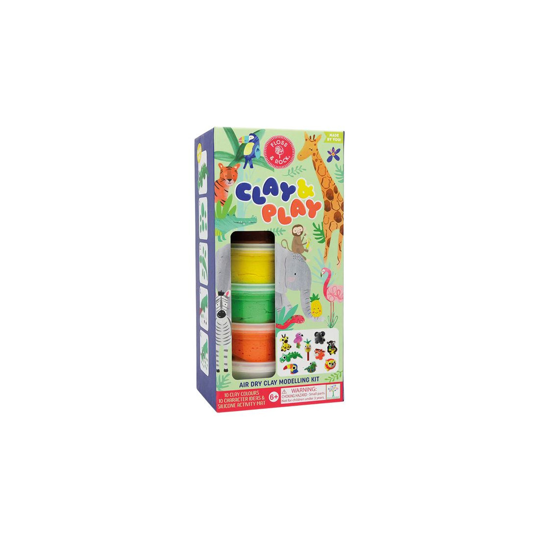 Zostań mistrzem rzeźbiarstwa z zestawem Dżungla Clay & Play! Zestaw pozwala na stworzenie 10 uroczych mieszkańców tropikalnych lasów. Karty z instrukcjami krok po kroku przeprowadzą Cię przez proces twórczy. Wykorzystaj dostarczoną glinę do modelowania, rolowania, rozciągania i spłaszczania. Narzędzie drewniane pomoże Ci dodać szczegóły do Twoich prac. Glina jest miękka w dotyku i schnie na powietrzu, co sprawia, że jest łatwa w obróbce, a dzięki silikonowej macie sprzątanie po zabawie jest minimalne. Po stworzeniu swoich niesamowitych dzieł, pozostaw je do wyschnięcia w bezpiecznym miejscu! Glina będzie sucha w dotyku już po 24 godzinach, a całkowicie wyschnie po 72 godzinach. Dodatkowo wnętrze pudełka może posłużyć jako tło do zabawy.