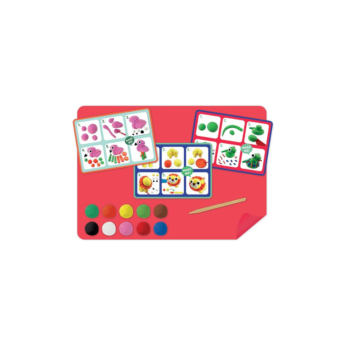 • Zestaw zawiera 6 pojemników z 10 różnymi kolorami gliny