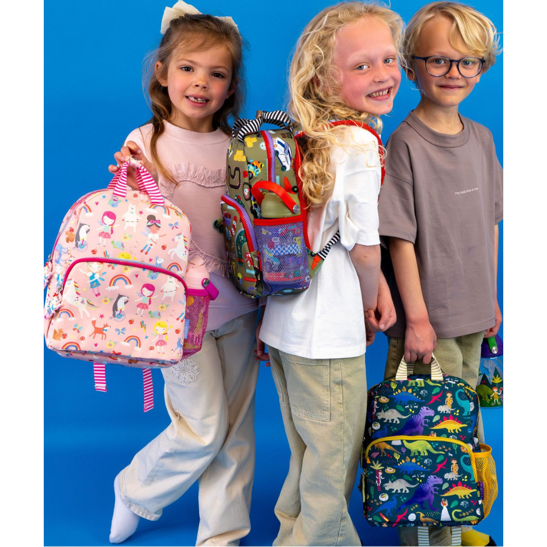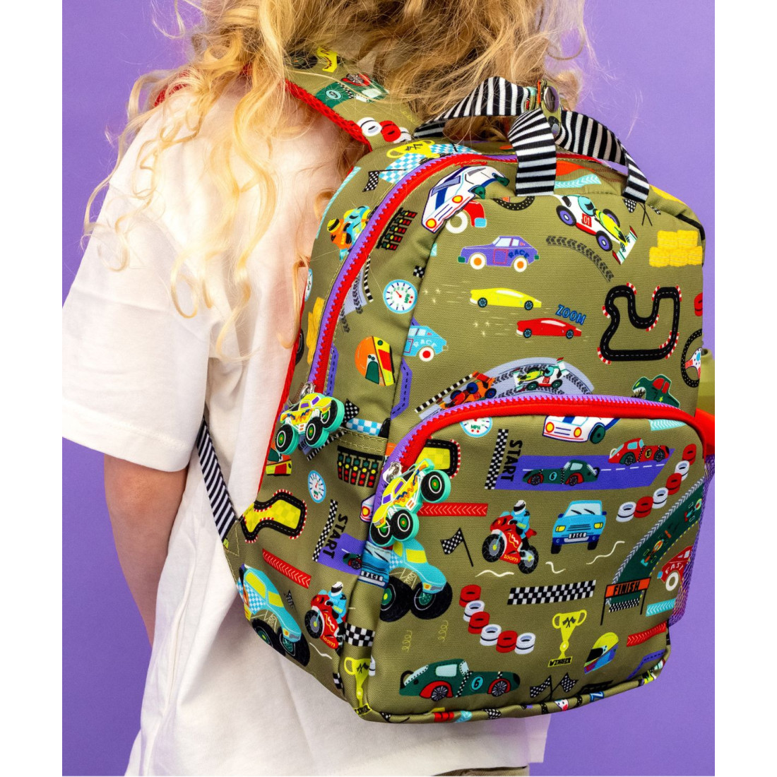 Plecak dla dzieci wykonany z materiałów z recyklingu, który łączy funkcjonalność i ekologiczną estetykę. Dzięki wodoodpornemu materiałowi – książki, przybory i lunch – pozostaną suche nawet w deszczowe dni. Intensywne kolory, motyw aut oraz detale jak kolorowe zamki i breloki czynią go idealnym towarzyszem do przedszkola, na wycieczki i codzienne przygody.
