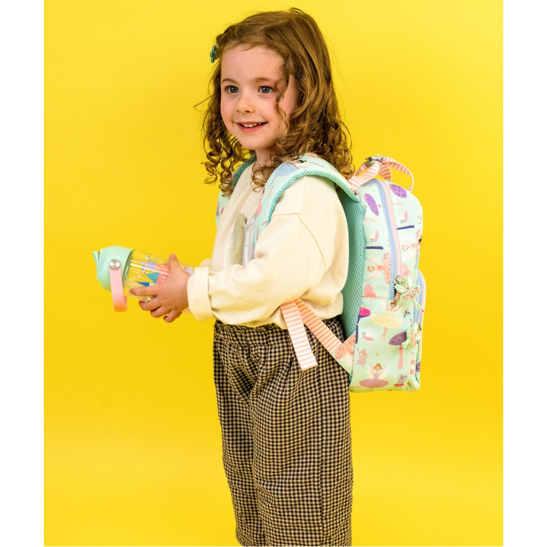 Plecak dla dzieci wykonany z materiałów z recyklingu, który łączy funkcjonalność i ekologiczną estetykę. Dzięki wodoodpornemu materiałowi – książki, przybory i lunch – pozostaną suche nawet w deszczowe dni. Intensywne kolory, motyw tańczących baletnic oraz detale jak kolorowe zamki i breloki czynią go idealnym towarzyszem do przedszkola, na wycieczki i codzienne przygody.