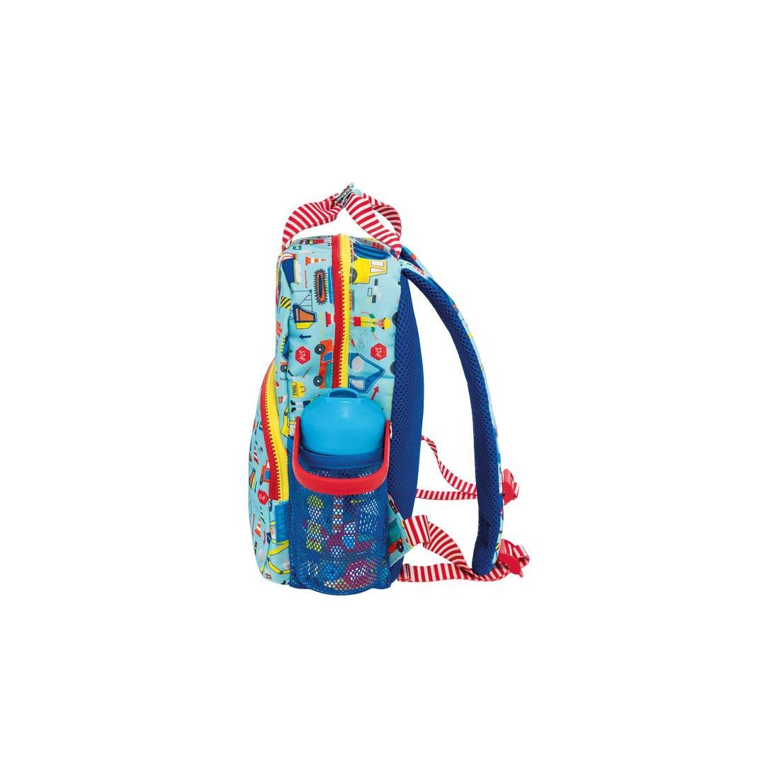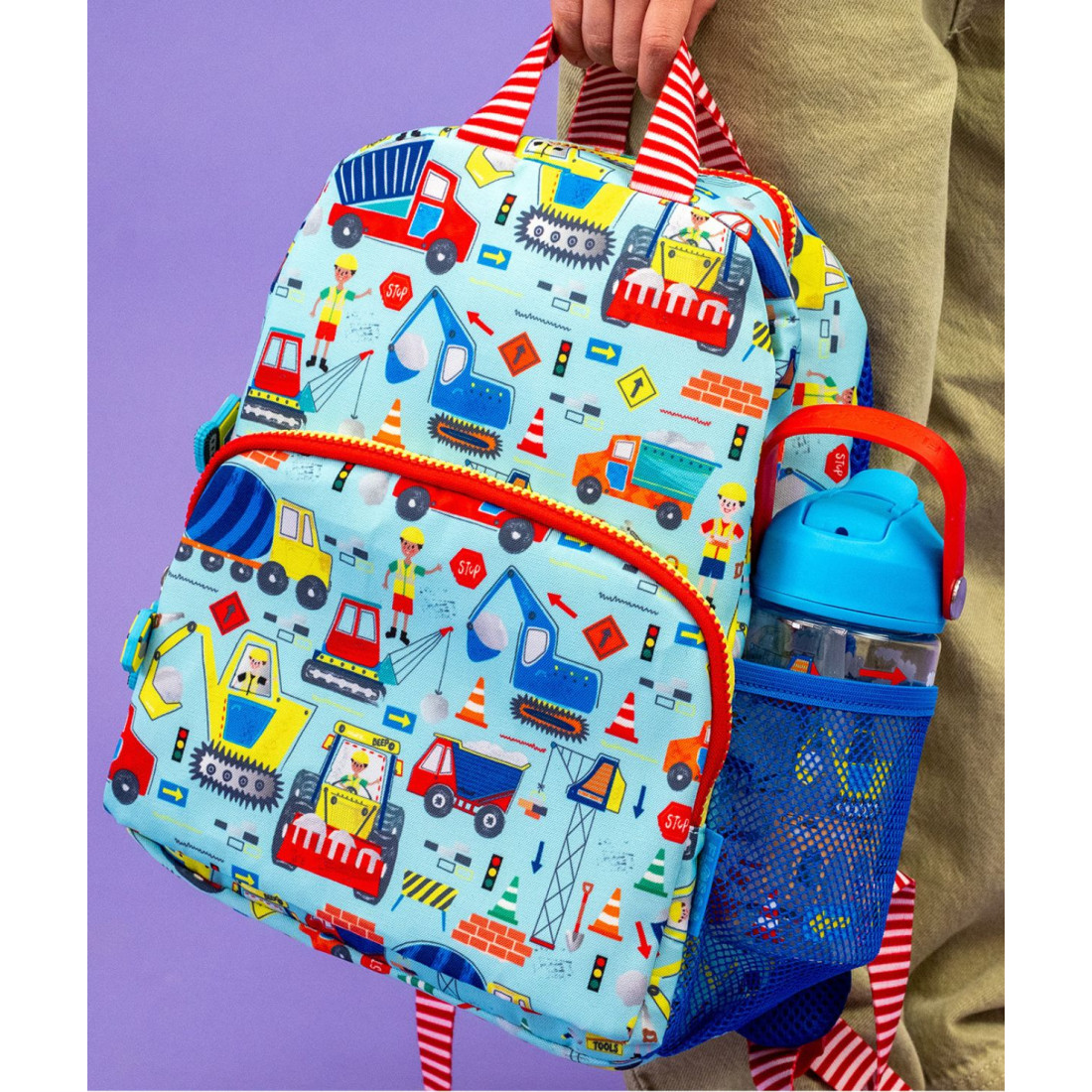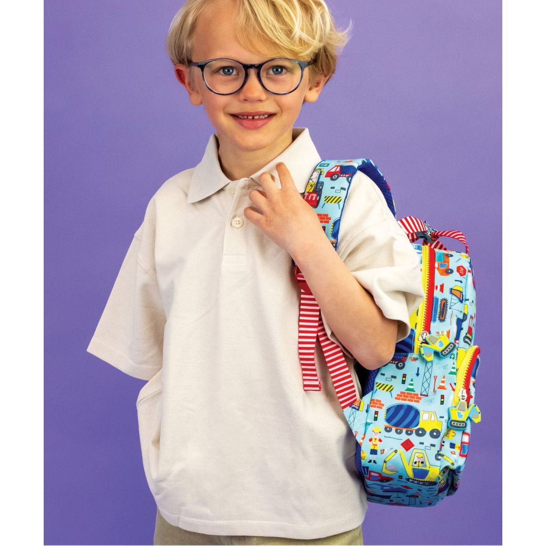 Plecak dla dzieci wykonany z materiałów z recyklingu, który łączy funkcjonalność i ekologiczną estetykę. Dzięki wodoodpornemu materiałowi – książki, przybory i lunch – pozostaną suche nawet w deszczowe dni. Intensywne kolory, motyw maszyn budowlanych oraz detale jak kolorowe zamki i breloki czynią go idealnym towarzyszem do przedszkola, na wycieczki i codzienne przygody.