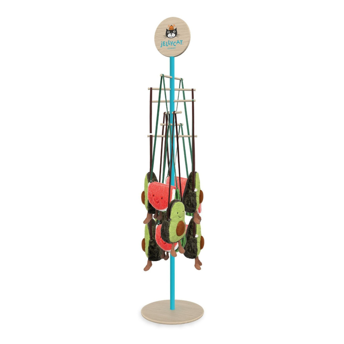 Stojak wykonany z jasnego drewna, ozdobiony logo Jellycat London. Doskonale wyeksponuje torebki Jellycat!