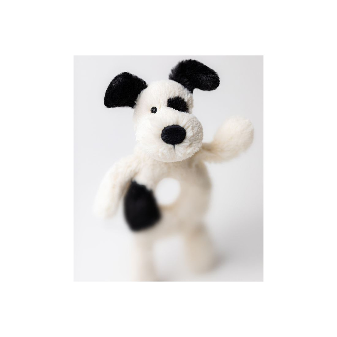 Bardzo miły i przyjemny w dotyku Piesek marki Jellycat z grzechotką, którego można przytulać i ściskać. Ma urocze uszka i brzuszek w kształcie pączka z dziurką. Gotowy w każdej chwili na wesołą zabawę! Piesek został uszyty z włókien pochodzących z recyklingu.