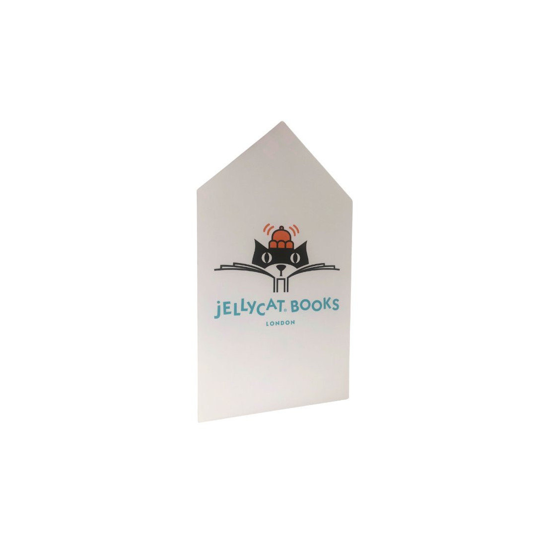Wkład do Ramki Reklamowej w kształcie domku, ozdobiona wyrazistym logo Jellycat Books , która doskonale wyeksponują markę na półce wśród pozostałych produktów.