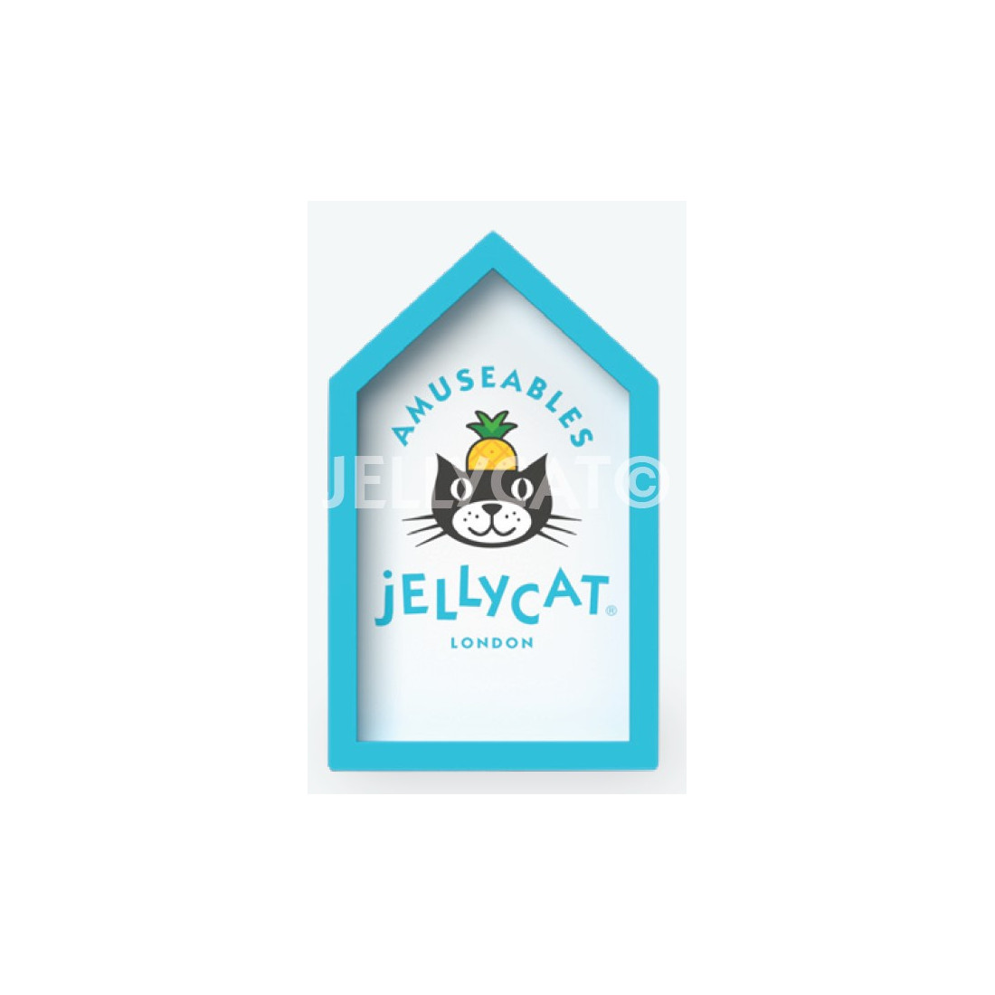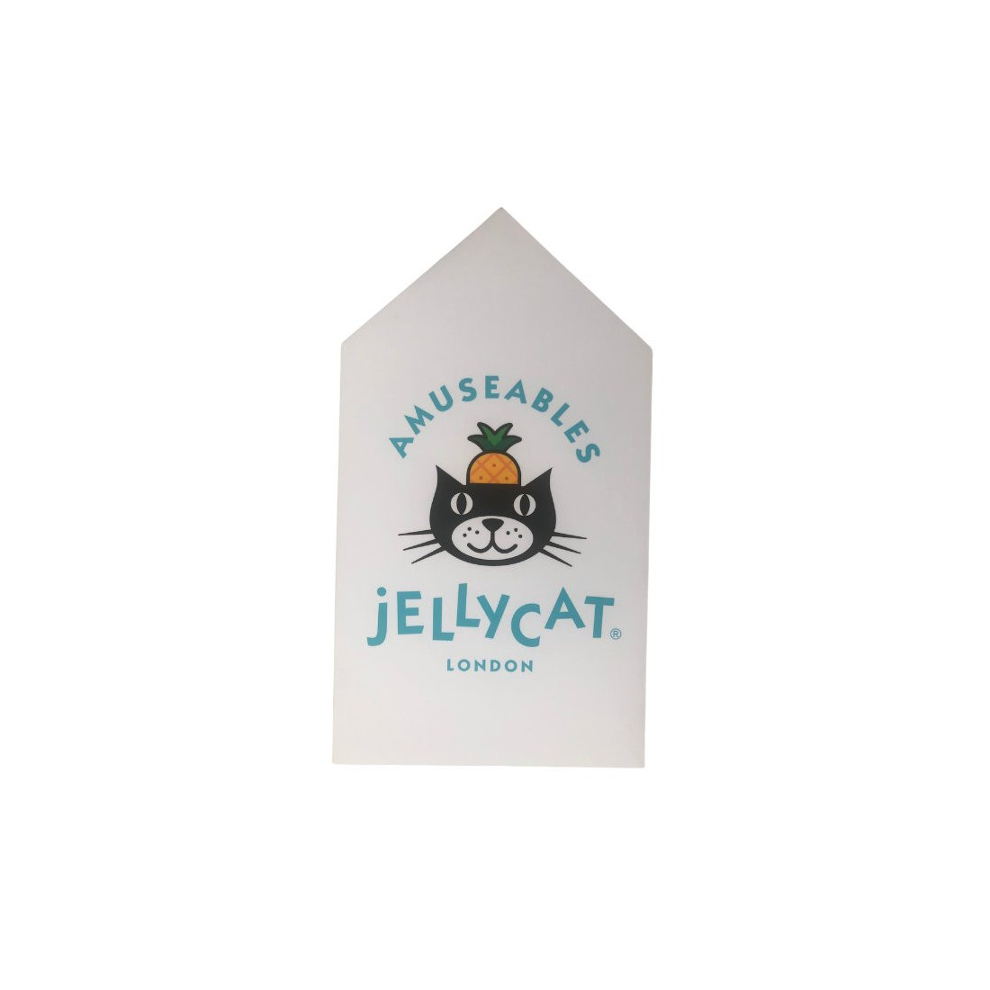 Wkład do Ramki Reklamowej w kształcie domku, ozdobiona wyrazistym logo Jellycat Amuseable, która doskonale wyeksponują markę na półce wśród pozostałych produktów.