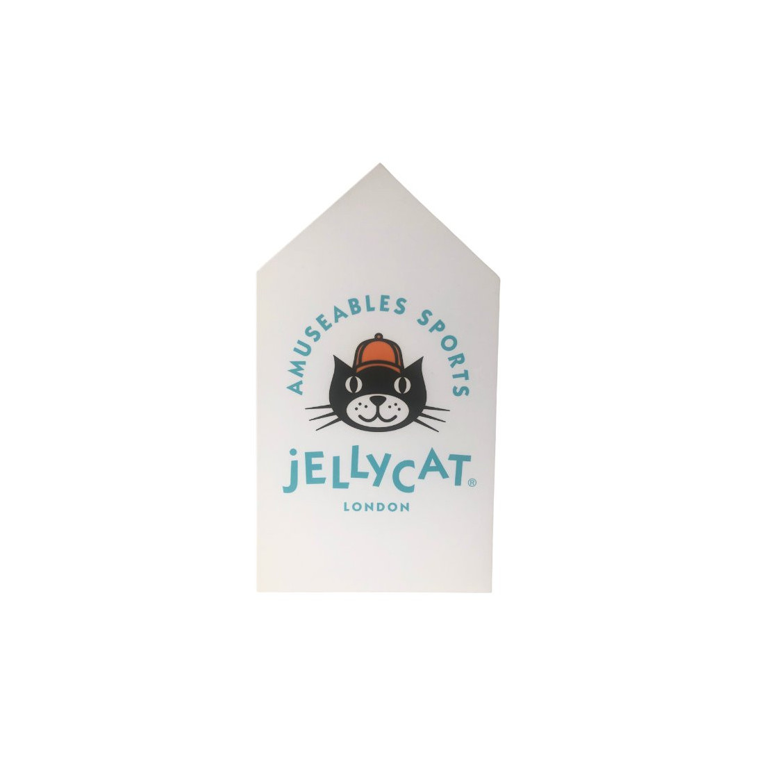 Wkład do Ramki Reklamowej w kształcie domku, ozdobiona wyrazistym logo Jellycat Sport, która doskonale wyeksponują markę na półce wśród pozostałych produktów.