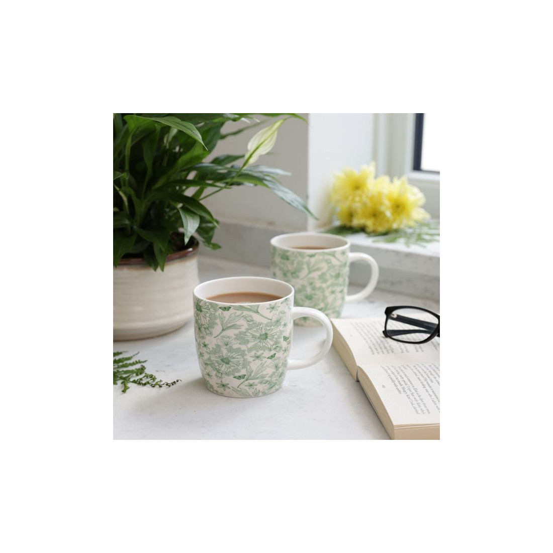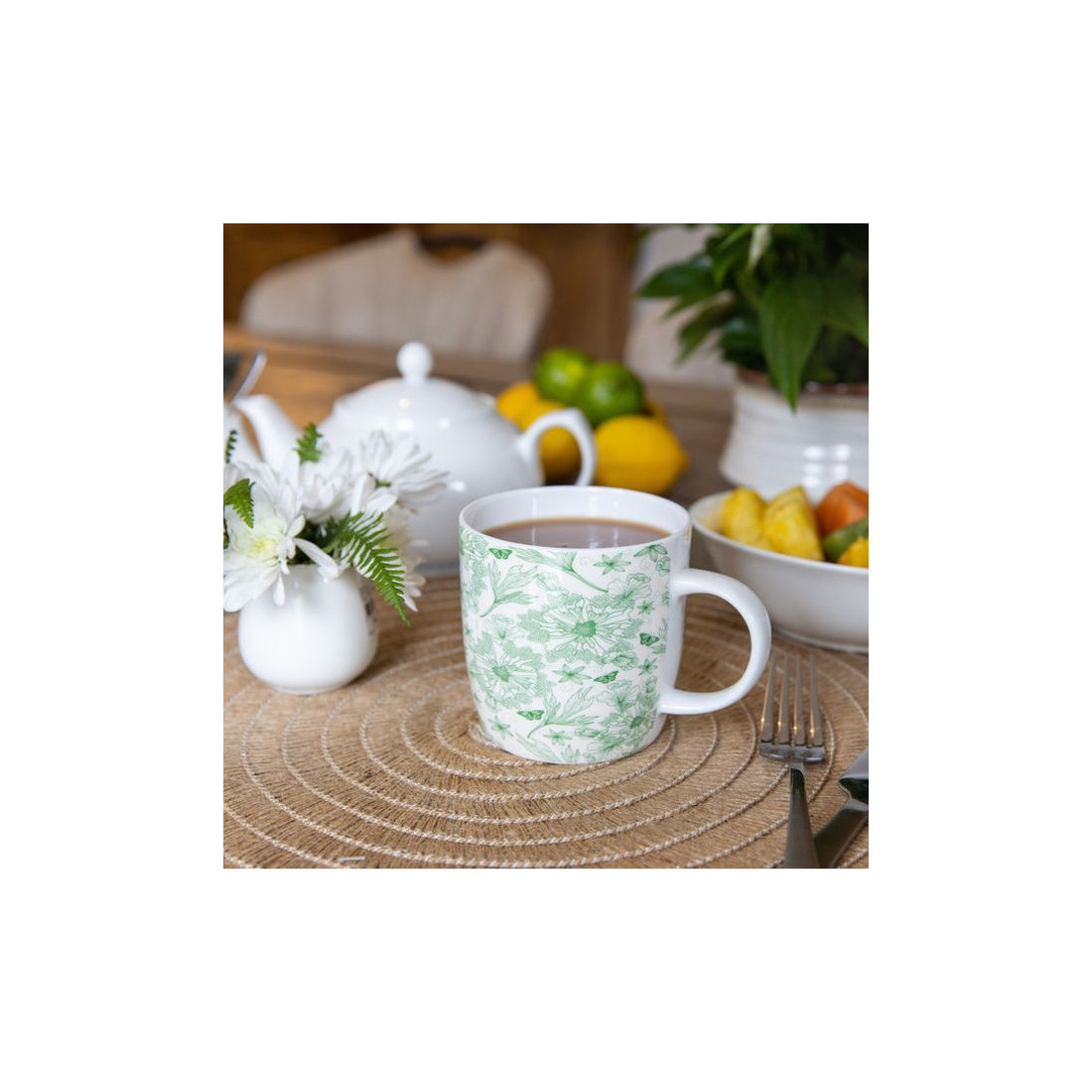 Kubek porcelanowy z liśćmi botanicznymi, 425 ml