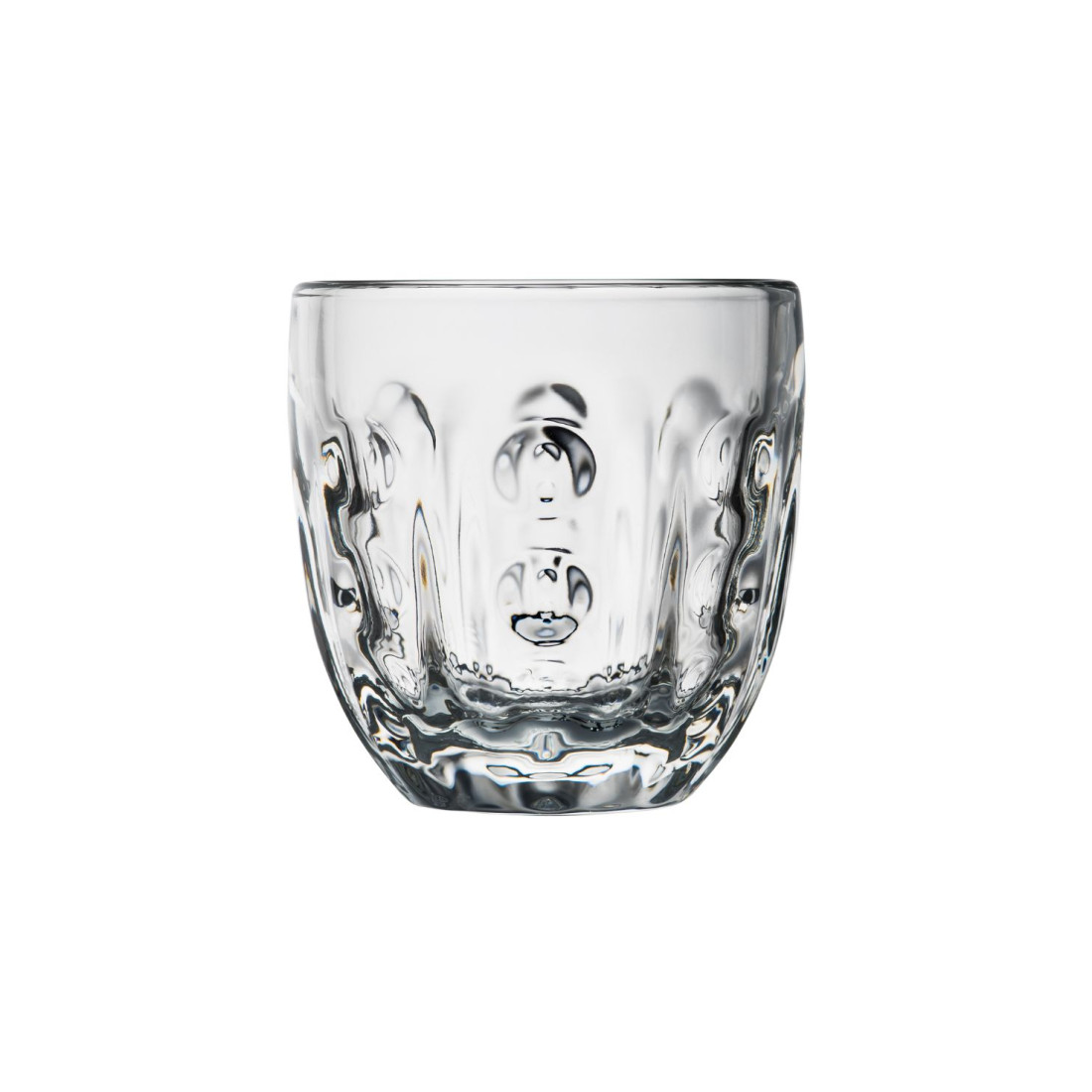 Zachwycająca elegancją i prostotą szklanka do espresso z kolekcji Troquet, francuskiej marki La Rochère, wykonana z prasowanego szkła, ozdobiona delikatnymi wgłębieniami. Doskonale leży w dłoni i ma przyjemny ciężar. Idealnie sprawdzi się do serwowania zimnych i ciepłych napojów.