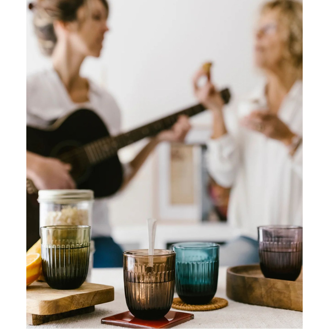 Stylowa i niezwykle praktyczna w użytkowaniu, szklanka z kolekcji Ouessant francuskiej marki La Rochère, wykonana z prasowanego szkła, ozdobiona eleganckimi pionowymi żłobieniami w kolorze mokka. Jest odpowiednio wyważona i wygodnie leży w dłoni. Idealnie sprawdzi się do serwowania wody, soków i zimnych napojów.