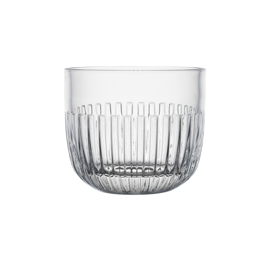 Stylowa i niezwykle praktyczna w użytkowaniu, szklanka z kolekcji Ouessant francuskiej marki La Rochère, wykonana z prasowanego szkła, ozdobiona eleganckimi pionowymi żłobieniami w kolorze transparentnym. Jest odpowiednio wyważona i wygodnie leży w dłoni. Idealnie sprawdzi się do serwowania wody, soków i zimnych napojów.