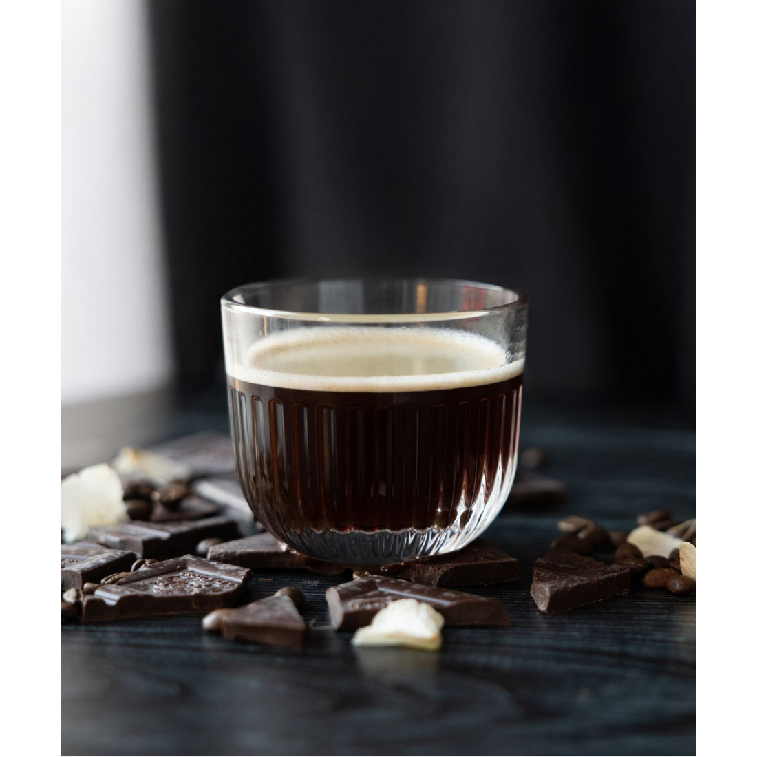 Szklanka pochodzi z kolekcji Ouessant, charakteryzującej się wspaniałym połyskiem dzięki eleganckim, wytłoczonym pionowym liniom. Kolekcja odzwierciedla prostotę i surowość związaną z wyspą Ouessant, leżącą na Oceanie Atlantyckim nieopodal wybrzeży Bretanii, regionu we wschodniej Francji.