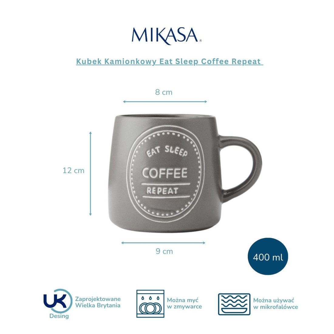 Mikasa, Kubek Kamionkowy Eat Sleep Coffee Repeat – 400 ml