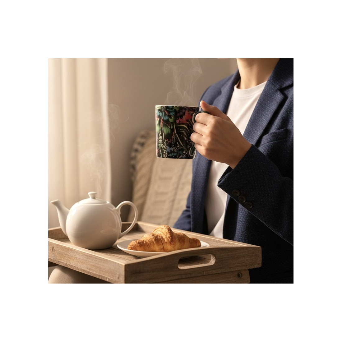 Ten porcelanowy kubek marki Mikasa z motywem motyla wnosi do Twojego stołu odrobinę dramatycznego uroku. Wykonany z wysokiej jakości porcelany, o pojemności 350 ml, idealny na poranną kawę lub popołudniową herbatę. Wytrzymała konstrukcja zapewnia długowieczność, a możliwość mycia w zmywarce oraz używania w kuchence mikrofalowej sprawia, że codzienne użytkowanie jest wygodne.