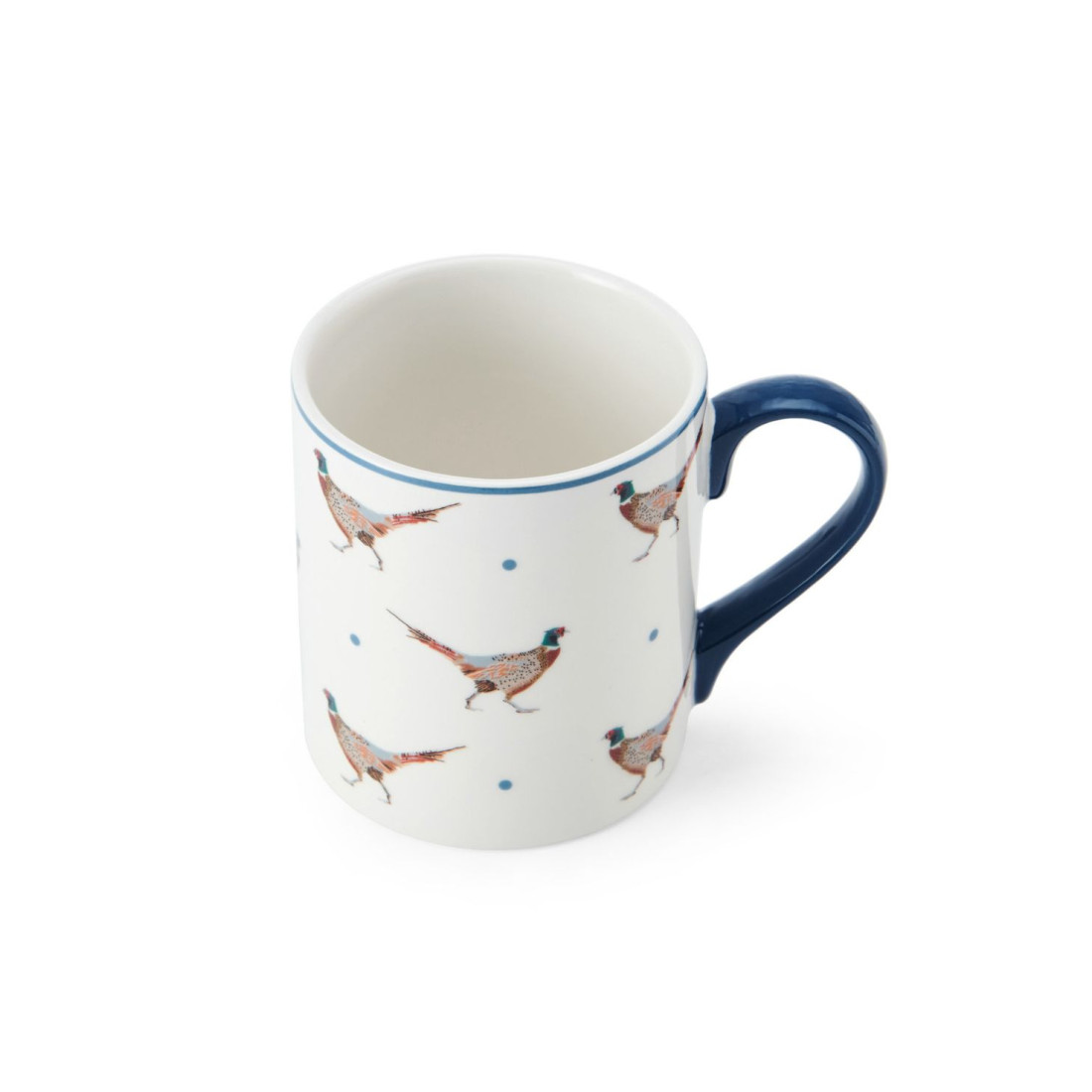 Kubek porcelanowy marki Mikasa to atrakcyjny dodatek do kuchni lub przemyślany prezent dla każdego miłośnika przyrody, zwierząt i klasycznego, rustykalnego stylu. Jego wyjątkowy design zdobi akwarelowa ilustracja bażantów w otoczeniu subtelnych, niebieskich kropek. Kubek o pojemności 280 ml wykonano z trwałej porcelany i ozdobiono kontrastującymi niebieskimi detalami na uchwycie i krawędzi, co dodaje mu wyjątkowego charakteru.