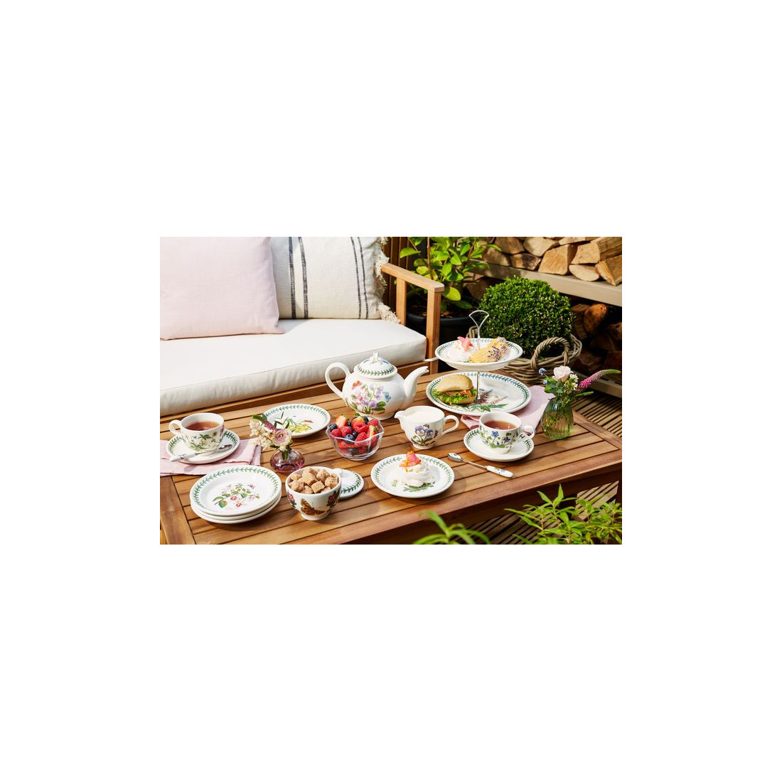 Dodaj uroku porankom dzięki filiżance śniadaniowej z kolekcji Botanic Garden. Ozdobiona pięknym motywem kwiatowym, przyciąga wzrok delikatnymi kolorami i klasycznym wzornictwem. Talerzyk wykończony charakterystycznym, liściastym rantem doskonale komponuje się z filiżanką, tworząc elegancki zestaw na codzienne chwile z kawą lub herbatą. Wykonany z wysokiej jakości kamionki, zestaw nadaje się do użycia w kuchence mikrofalowej i zmywarce.