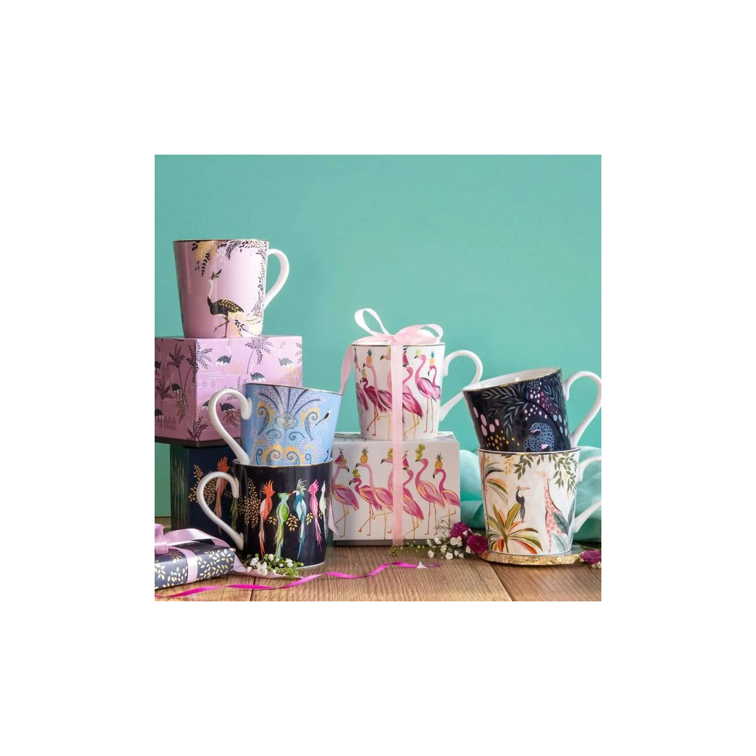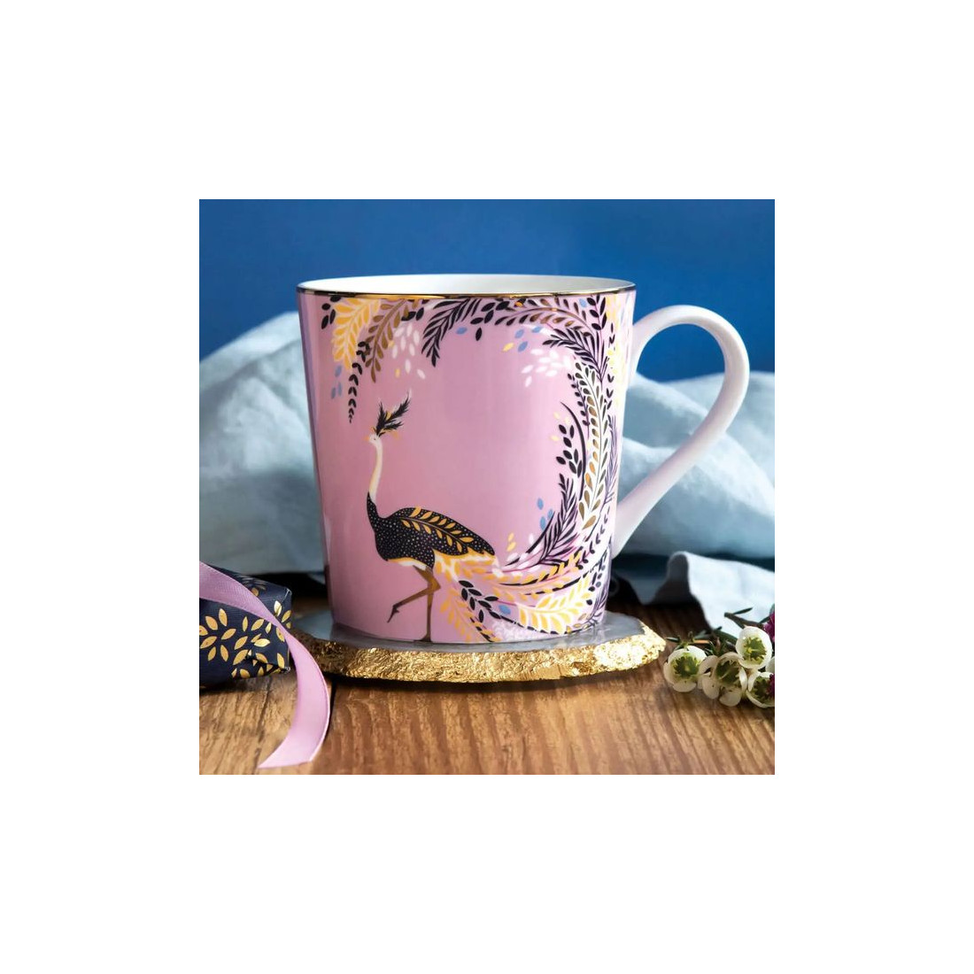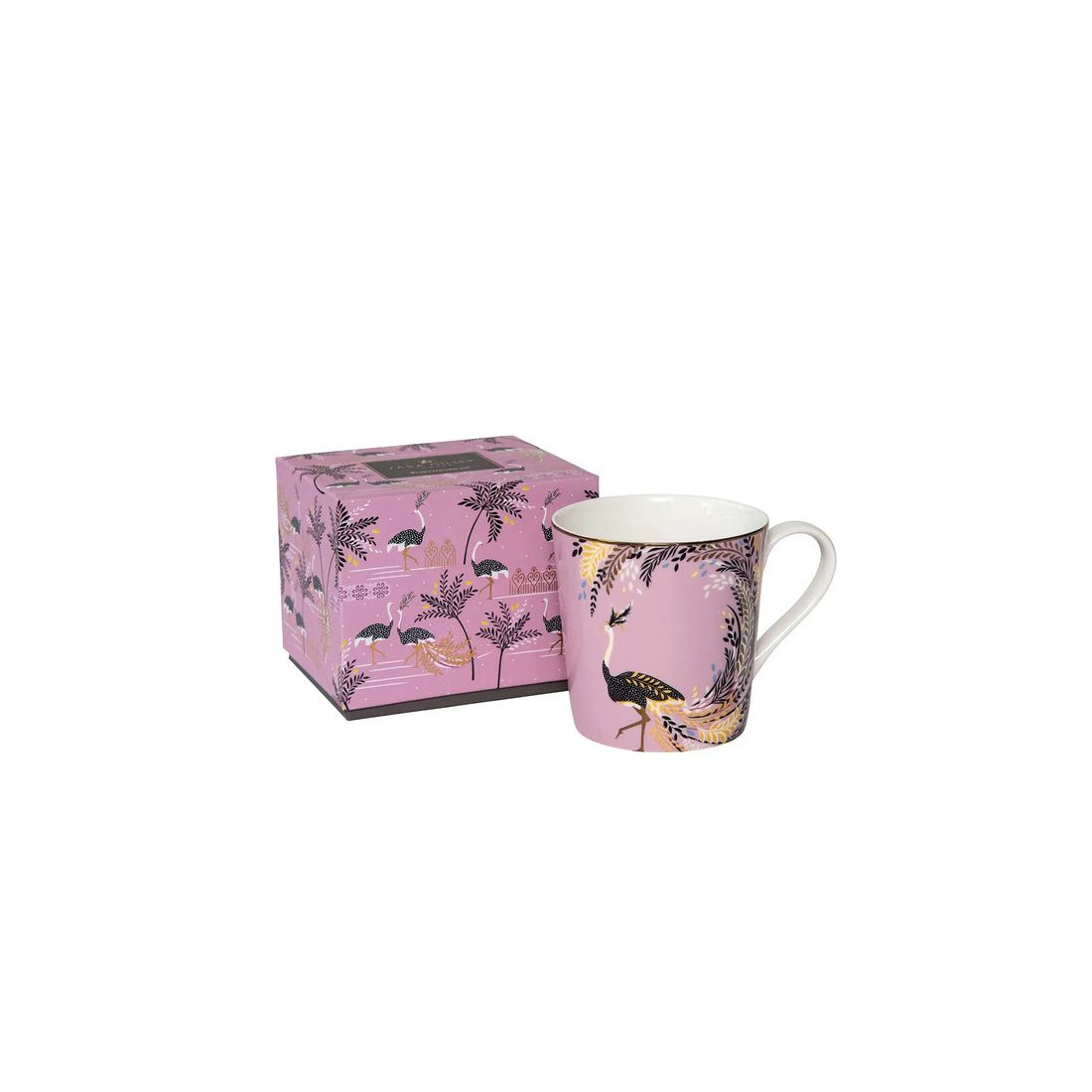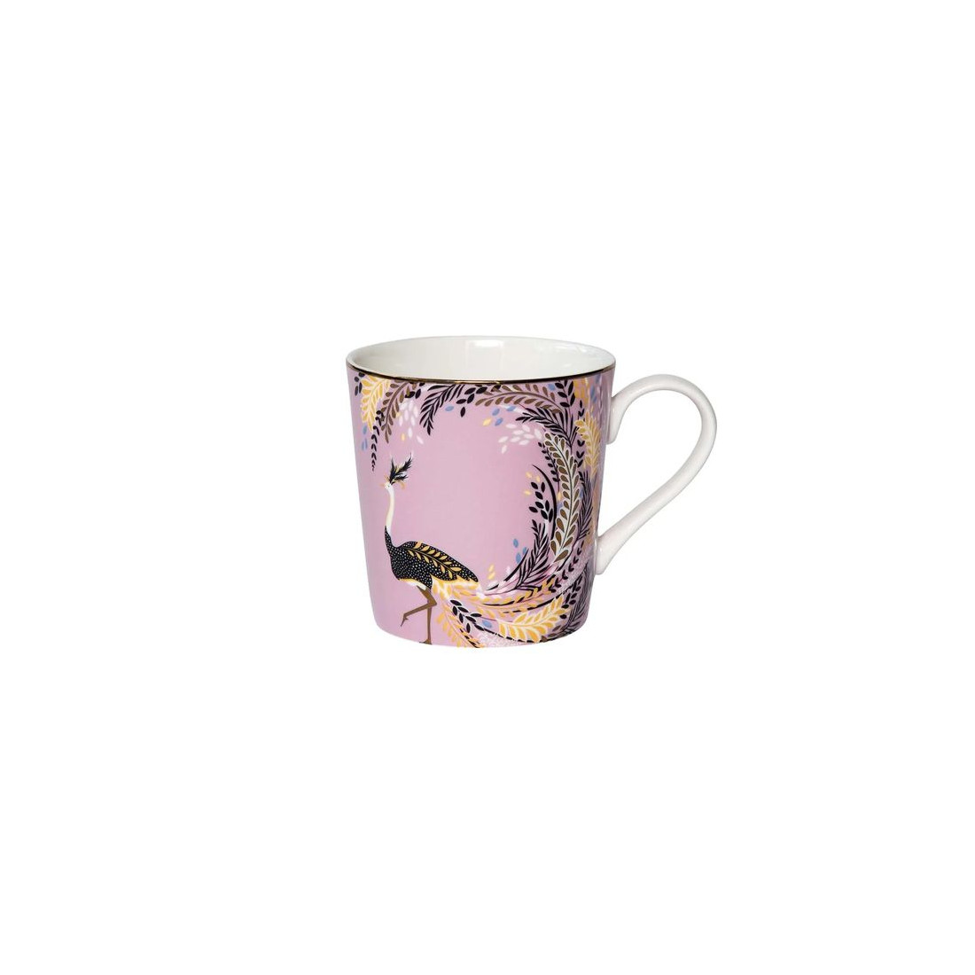 Ten wykwintny kubek porcelanowy Sara Miller London Ostrich Tail Feathers marki Portmeirion zachwyca artystycznym wzorem inspirowanym majestatycznym strusiem oraz jego spektakularnym upierzeniem. Na tle delikatnego różu rozpościera się imponująca, wielobarwna kompozycja piór, tworząca elegancką, egzotyczną i niezwykle dekoracyjną scenę.