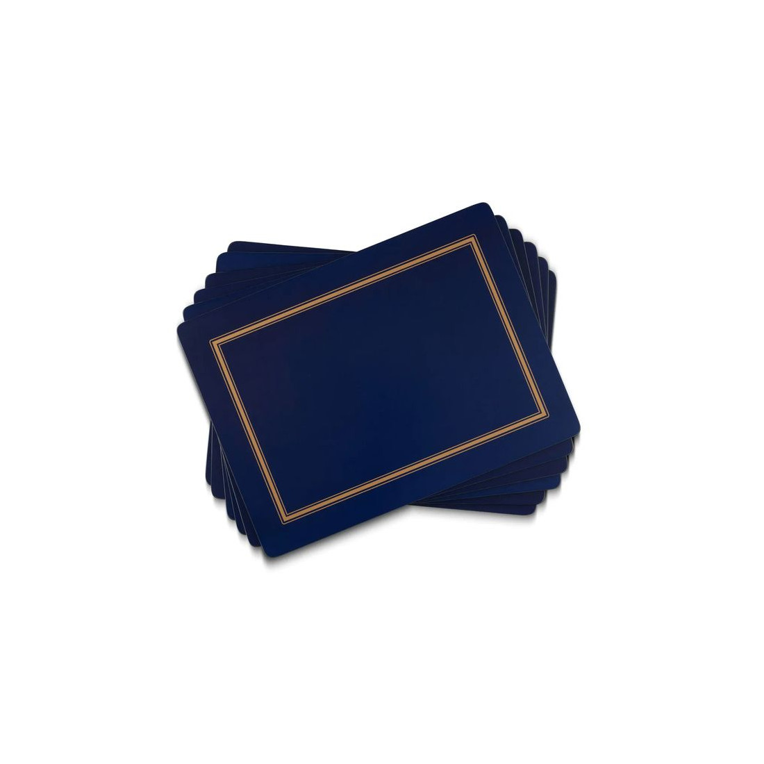 Zestaw sześciu stylowych i praktycznych podkładek korkowych, w kolorze granatowym, ozdobionych symetryczną potrójną ramką z kolekcji Classic Midnight.