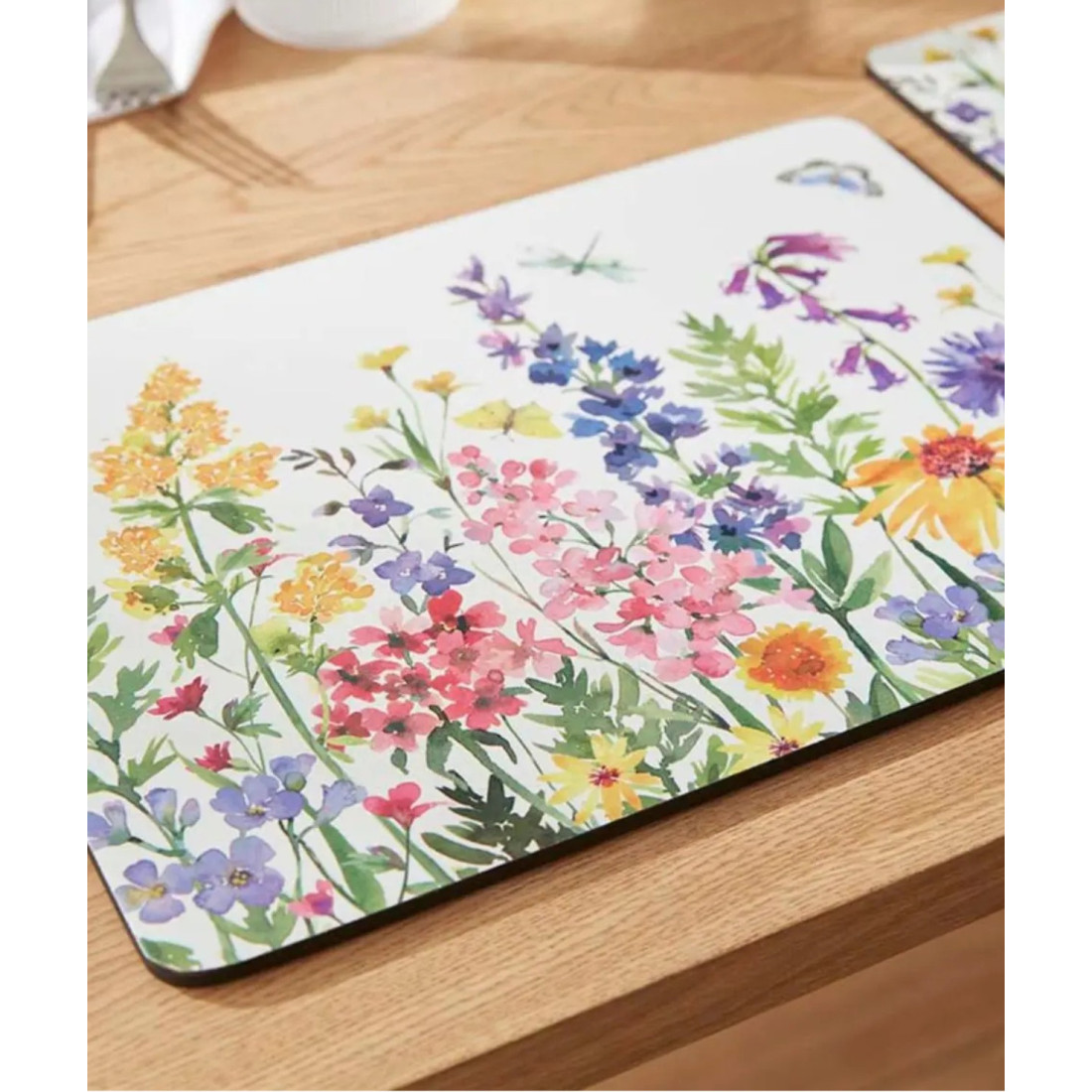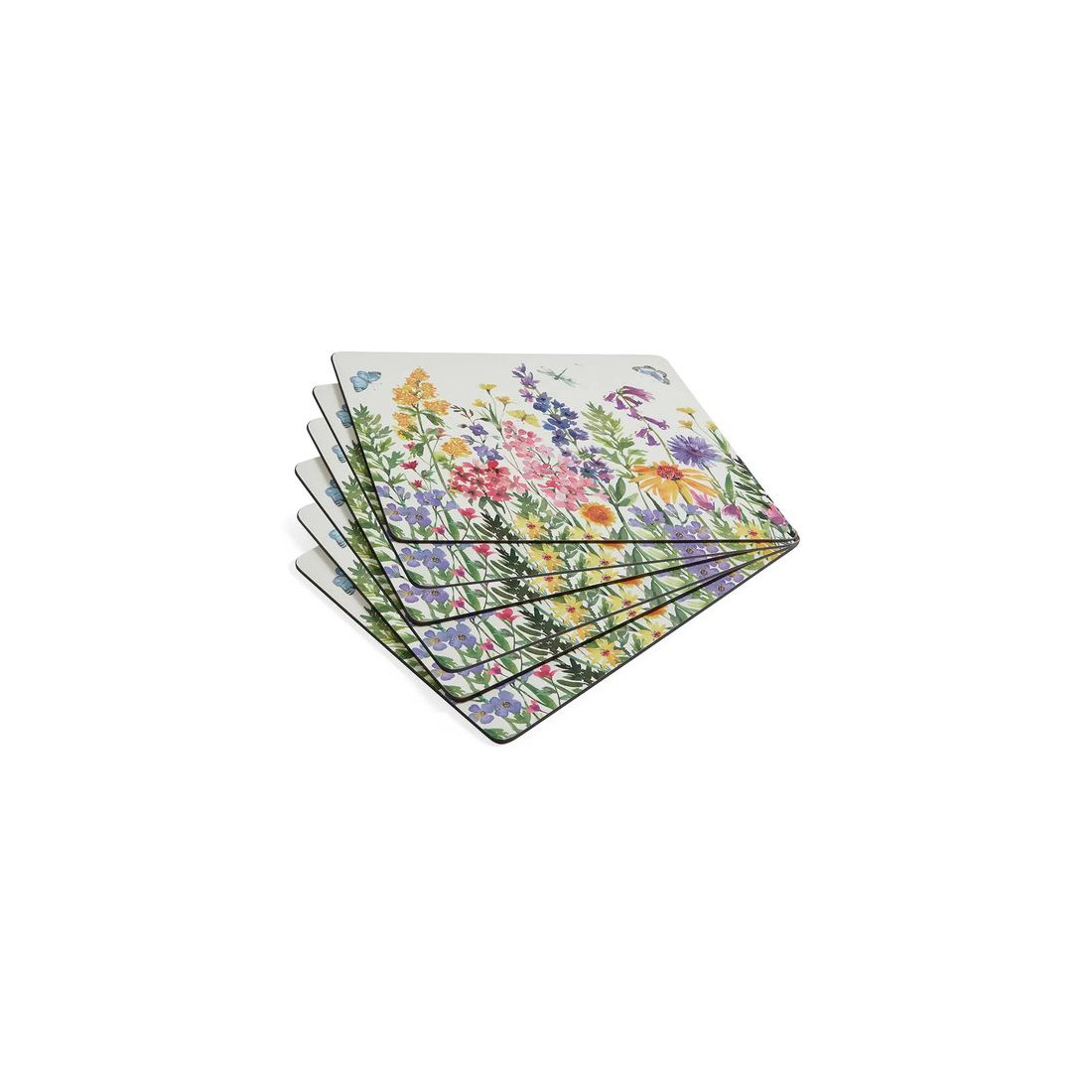 Zestaw sześciu eleganckich i praktycznych podkładek korkowych marki Pimpernel, ozdobionych wyjątkowymi motywami polnych kwiatów i kolorowych motyli. Łączą styl z funkcjonalnością, a dzięki ponadczasowym wzorom i wysokiej jakości wykonaniu stanowią elegancką ozdobę stołu oraz świetny pomysł na prezent.