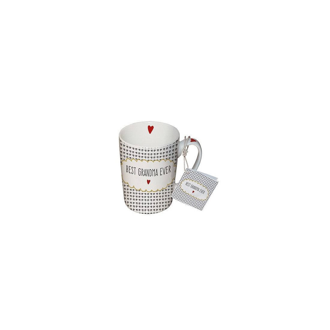 Kubek porcelanowych o pojemności 250 ml, przedstawiający stylizowany napis: „Best Grandma Ever” na kropkowanym tle. Wykonany z porcelany charakteryzującej się wyjątkową elegancją i wytrzymałością. Poręczne ucho gwarantuje stabilny uchwyt podczas picia. Idealnie sprawdzi się do serwowania kawy, herbaty, gorącej czekolady i naparów ziołowych.