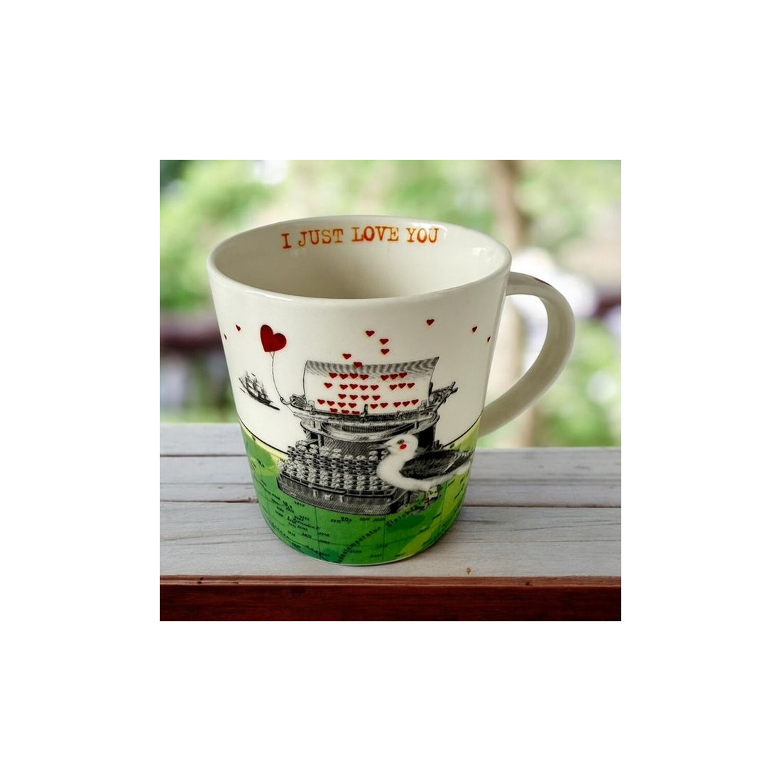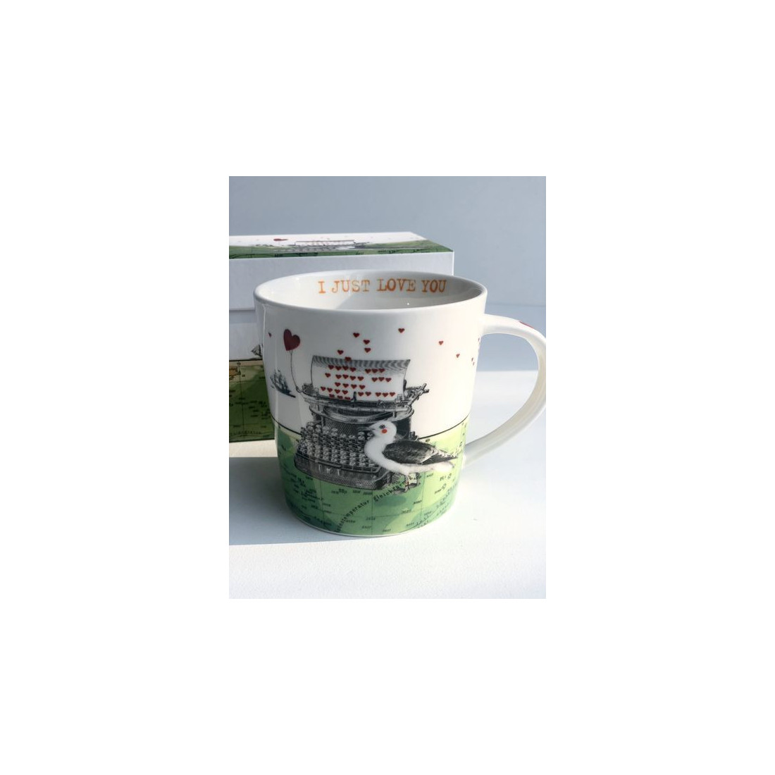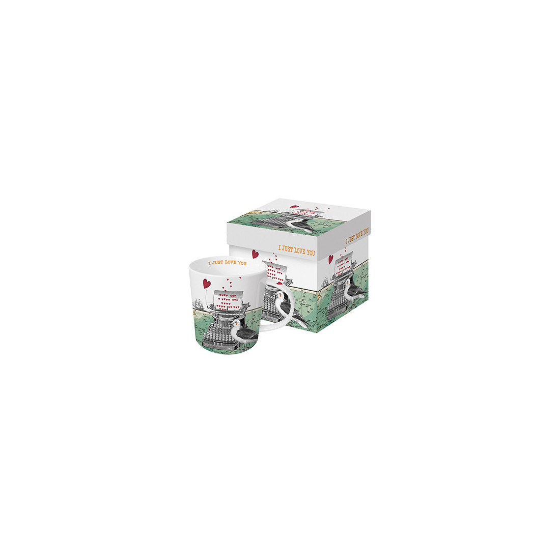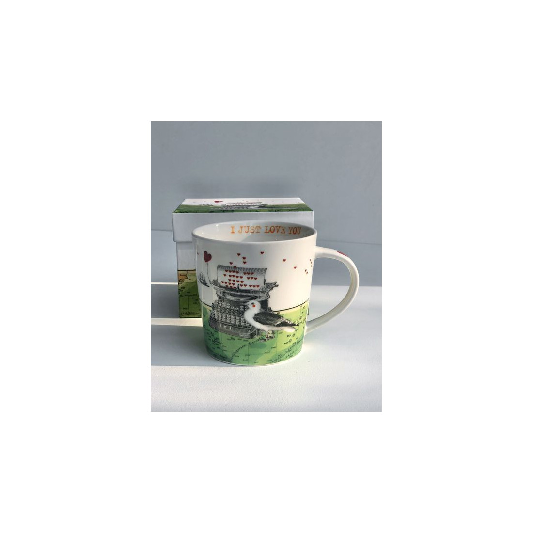 Kubek porcelanowych o pojemności 350 ml, zdobiony motywem mewy i starej maszyny do pisania i stylizowanym napisem: „I Just Love You”. Wykonany z porcelany charakteryzującej się wyjątkową elegancją i wytrzymałością. Poręczne ucho gwarantuje stabilny uchwyt podczas picia. Zapakowany w ozdobne pudełko, o tym samym motywie. To doskonały pomysł na upominek dla najbliższych, przyjaciół i znajomych.