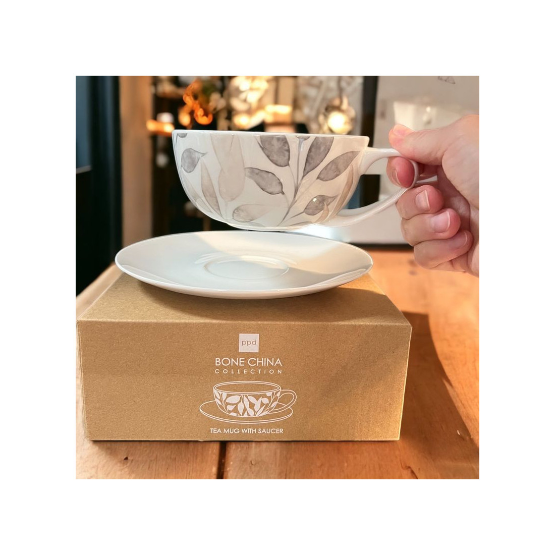 Filiżanka Porcelanowa o pojemności 350 ml, przedstawiająca delikatny motyw skandynawskich liści. Wykonana z porcelany charakteryzującej się wyjątkową elegancją i wytrzymałością. Poręczne ucho gwarantuje stabilny uchwyt podczas picia. Idealnie sprawdzi się do serwowania kawy, herbaty, gorącej czekolady i naparów ziołowych.