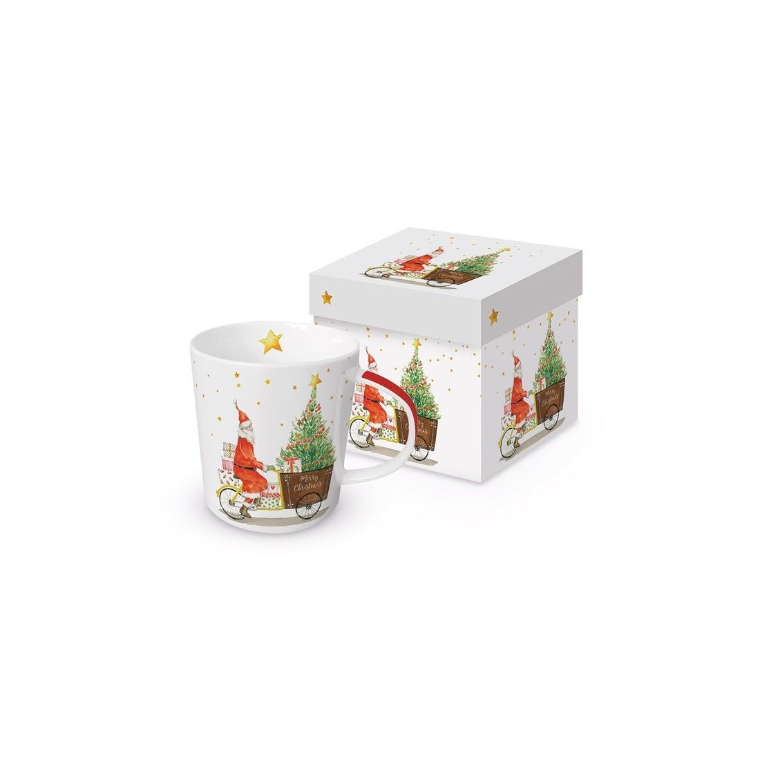"Święty Mikołaj na Rowerze" Kubek Porcelanowy w Ozdobnym Pudełku 350 ml