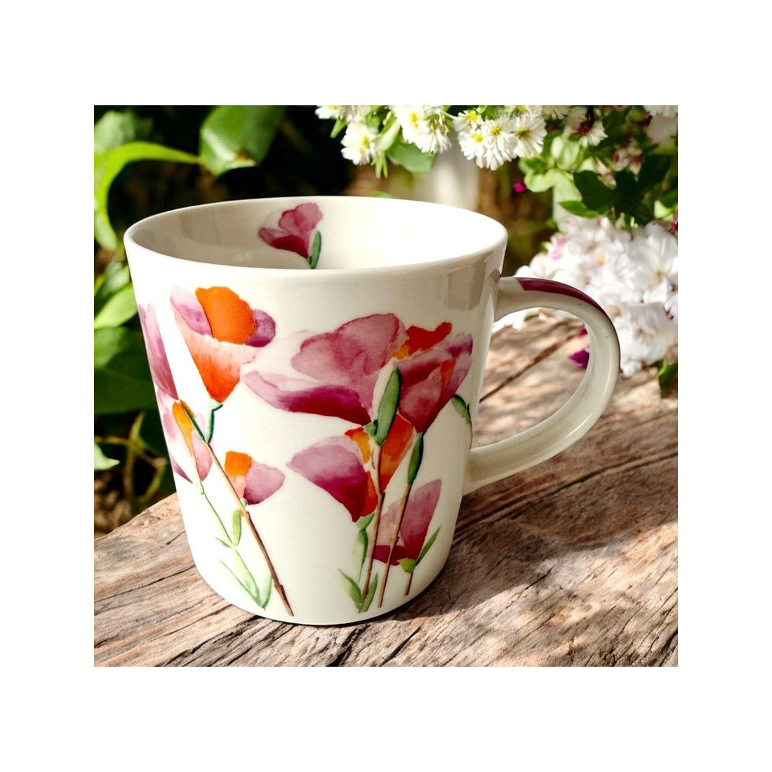 Kubek porcelanowy o pojemności 350 ml z pięknym motywem pięknych azalii. Wykonany z porcelany charakteryzującej się wyjątkową elegancją i wytrzymałością. Poręczne ucho gwarantuje stabilny uchwyt podczas picia. Zapakowany w ozdobne pudełko, o tym samym motywie. To doskonały pomysł na upominek dla najbliższych, przyjaciół i znajomych.
