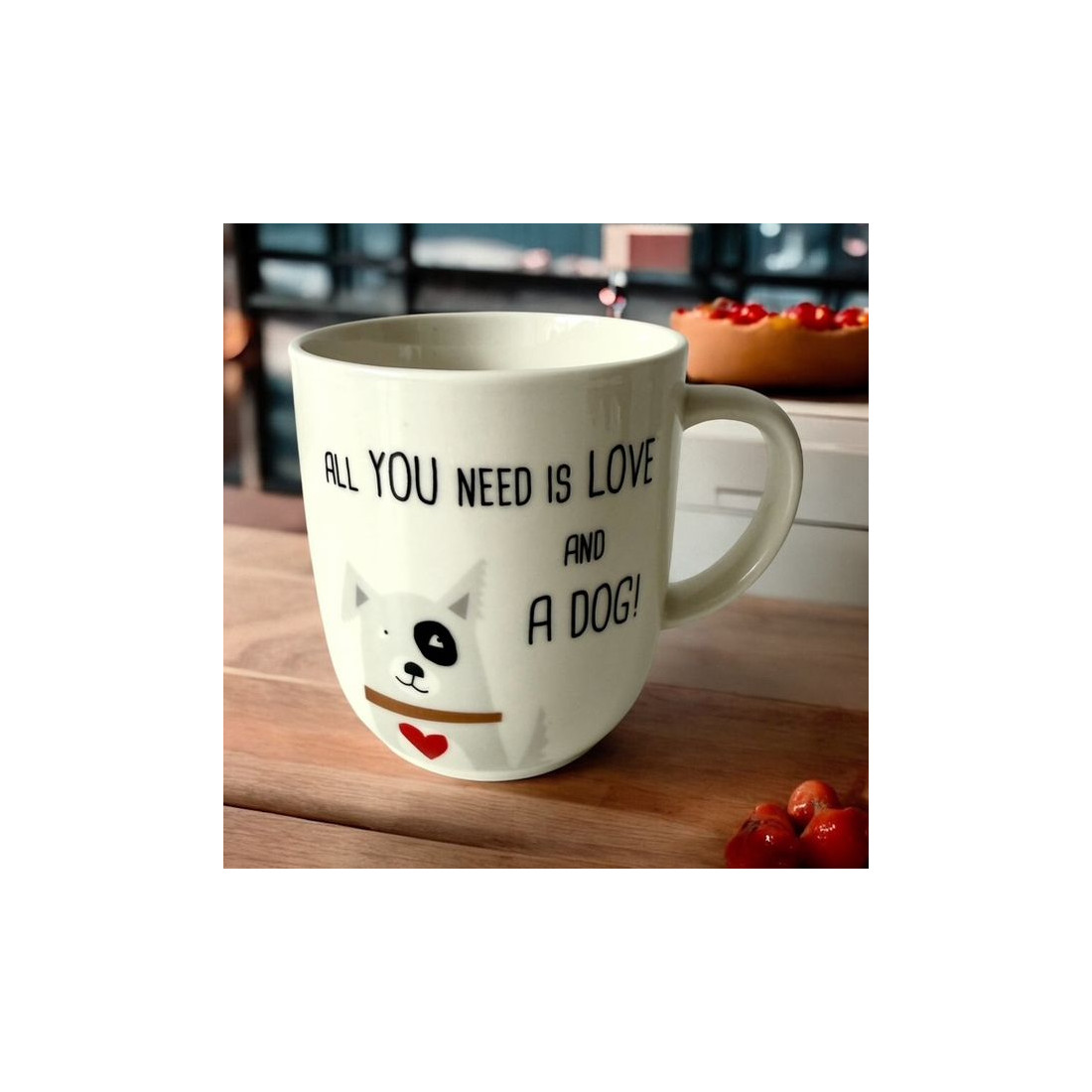 Porcelanowy kubek marki Paper Products Design o pojemności 350 ml to idealny dodatek do codziennych chwil, który możesz podarować sobie lub bliskiej osobie. Kubek ozdobiony jest uroczym motywem psa oraz delikatnym napisem „All you need is love and a dog”. Wykonany z najwyższej jakości porcelany kostnej, kubek wyróżnia się elegancją i trwałością. To wyjątkowy element zastawy, który wzbogaci domową kolekcję i sprawi radość każdemu miłośnikowi psów.