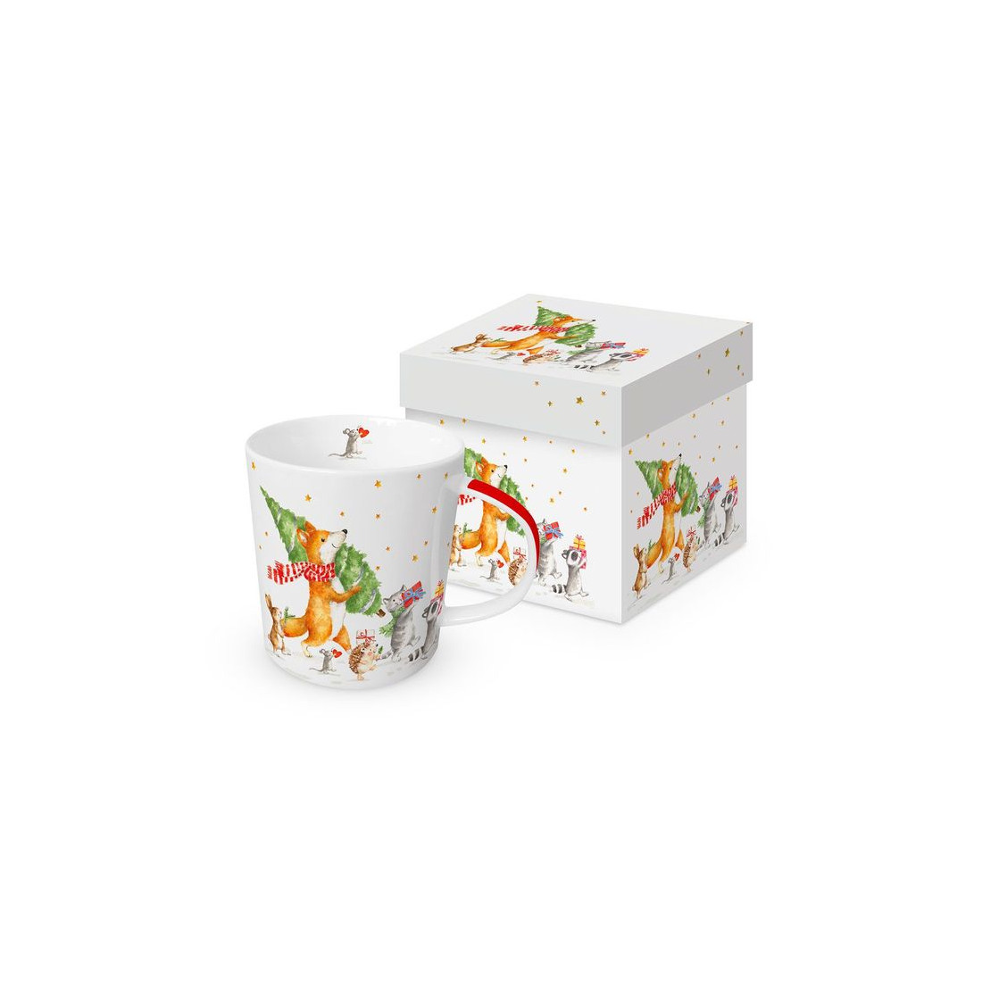 Porcelanowy kubek marki Paper Products Design o pojemności 350 ml to idealny dodatek do codziennych chwil, który możesz podarować sobie lub bliskiej osobie. Kubek ozdobiony jest uroczym motywem leśnych zwierzątek z choinką i prezentami, zapakowany w eleganckie upominkowe pudełko o tym samym wzorze. Wykonany z najwyższej jakości porcelany kostnej, kubek wyróżnia się elegancją i trwałością. To wyjątkowy element zastawy, który wzbogaci domową kolekcję świątecznych kubków i sprawi radość każdemu, kto go otrzyma.