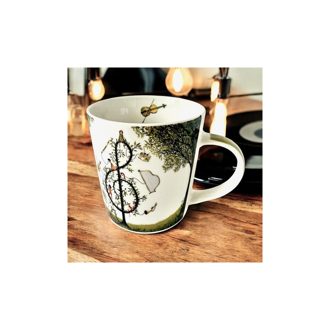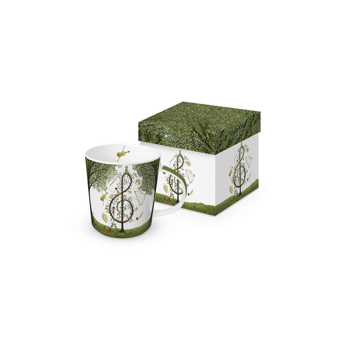 Porcelanowy kubek marki Paper Products Design o pojemności 350 ml to idealny dodatek do codziennych chwil, który możesz podarować sobie lub bliskiej osobie. Kubek zdobi uroczy, bajkowy motyw drzewa w kształcie klucza wiolinowego, na którym siedzą dzieci i zwierzęta ze słuchawkami na uszach, otoczone fruwającymi instrumentami. Całość zapakowana jest w eleganckie upominkowe pudełko o tym samym wzorze, co czyni kubek doskonałym prezentem. Wykonany z najwyższej jakości porcelany kostnej, wyróżnia się elegancją i trwałością. To wyjątkowy element zastawy, który wzbogaci każdą kolekcję i sprawi radość każdemu, kto go otrzyma.