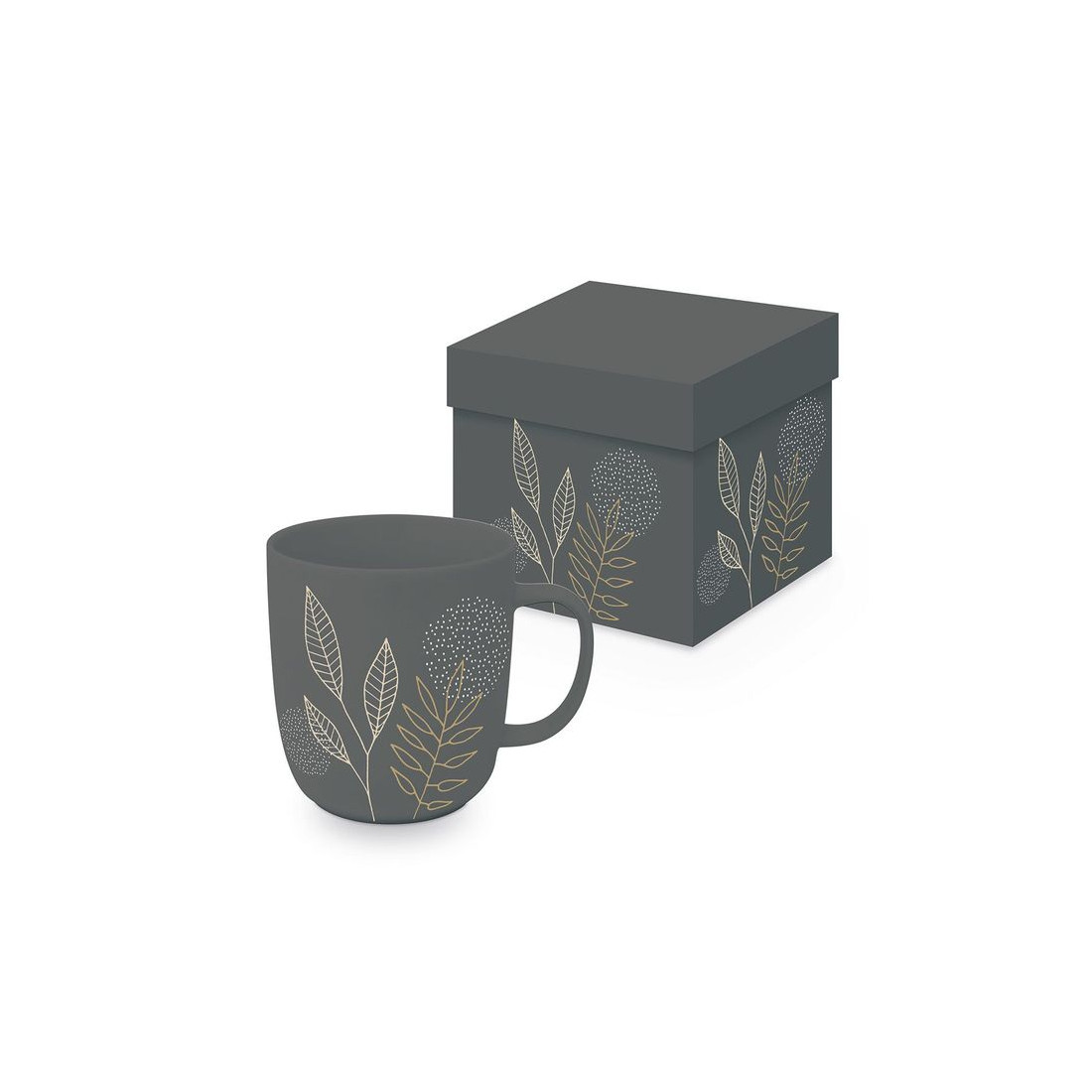 Porcelanowy kubek marki Paper Products Design o pojemności 400 ml to idealny dodatek do codziennych chwil, który możesz podarować sobie lub bliskiej osobie. Kubek ozdobiony jest delikatnym motywem złotych liści na matowym tle i zapakowany w eleganckie upominkowe pudełko o tym samym wzorze, stanowi doskonały prezent. Wykonany z najwyższej jakości porcelany kostnej, wyróżnia się elegancją i trwałością. To wyjątkowy element zastawy, który wzbogaci każdą kolekcję i sprawi radość każdemu, kto go otrzyma.