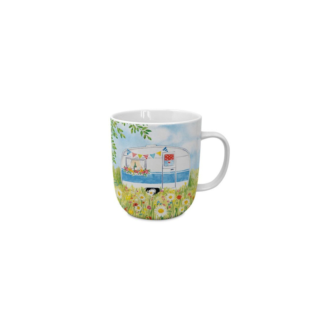 Wesoły Camping to wyjątkowy kubek ozdobiony motywami przyczepy campingowej na łące, które wprowadzają do Twojego dnia atmosferę wakacyjnych przygód. Jego pojemność 400 ml sprawia, że jest idealny na poranną kawę, herbatę lub inne ulubione napoje.