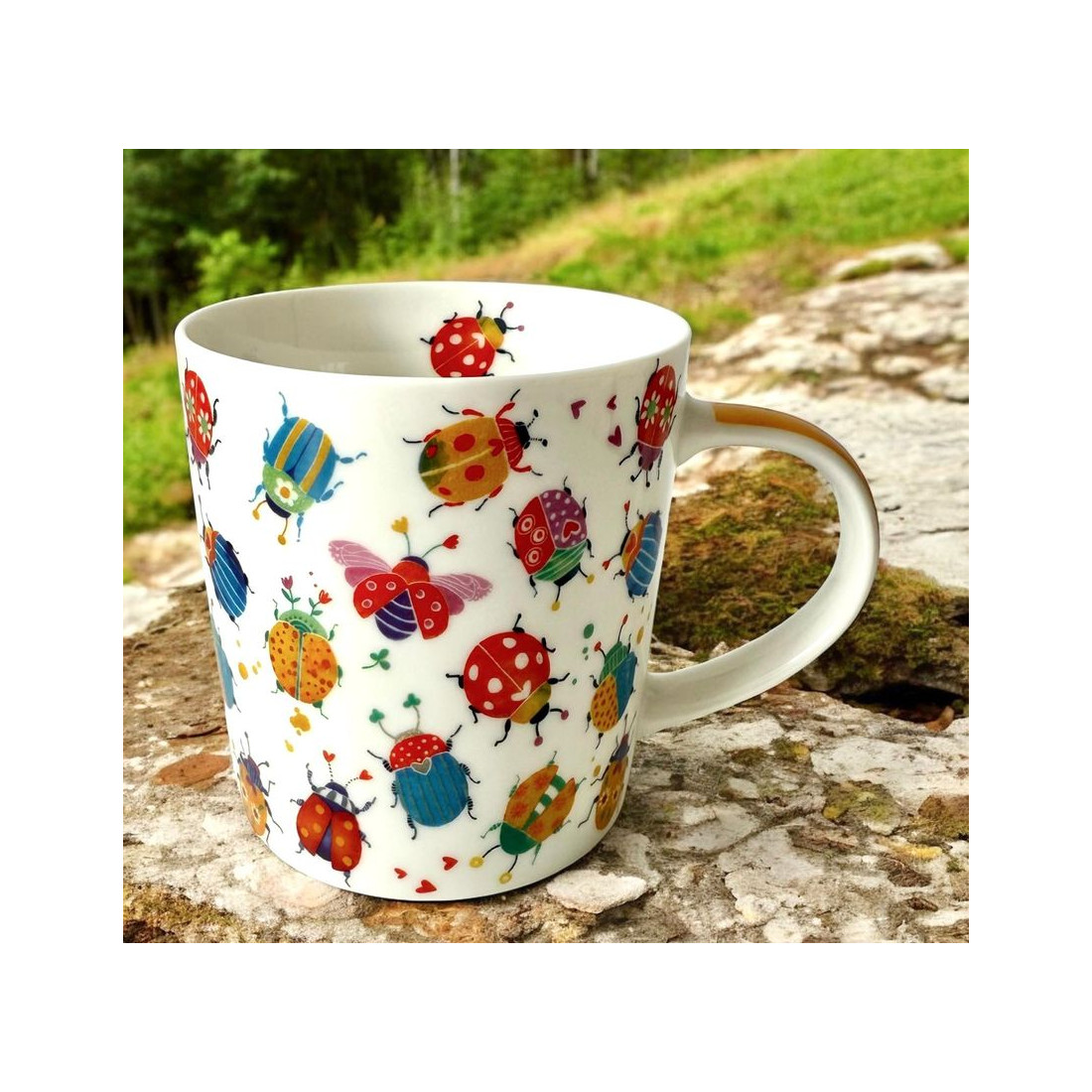 Kubek porcelanowy o pojemności 400 ml marki Paper Products Design z kolorowym, pełnym uroku motywem owadów i roślin. Wykonany z eleganckiej i wytrzymałej porcelany magnezowej. Poręczne ucho zapewnia komfort trzymania podczas picia. Zapakowany w ozdobne pudełko o tym samym motywie – to doskonały pomysł na upominek dla najbliższych, przyjaciół i znajomych.