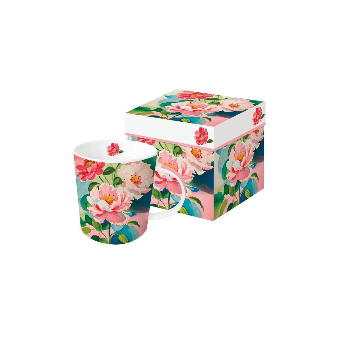 Piwonie Kubek Porcelanowy w Ozdobnym Pudełku, 400 ml