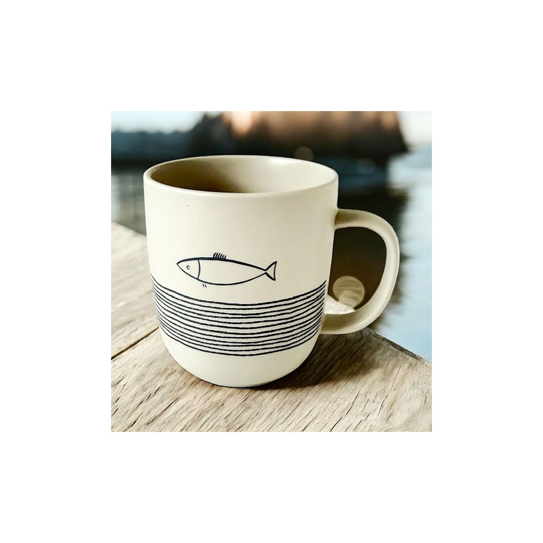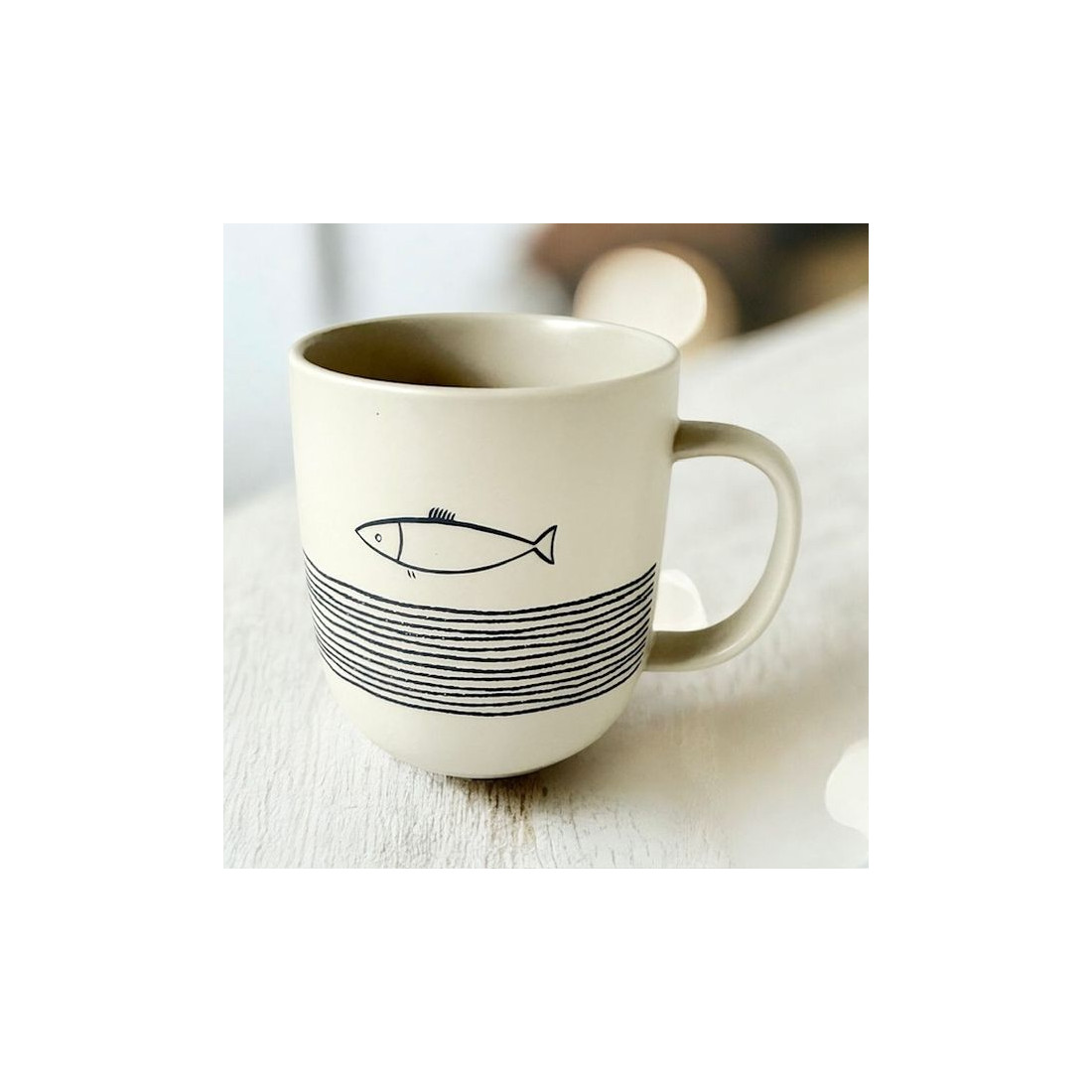 Kubek porcelanowy o pojemności 400 ml marki Paper Products Design z subtelnym rybnym motywem i eleganckim matowym wykończeniem w odcieniu złamanej bieli. Wykonany z wysokiej jakości porcelany typu New Bone China, która łączy lekkość z trwałością. Poręczne ucho zapewnia wygodę podczas użytkowania. Zapakowany w ozdobne pudełko o tym samym motywie – idealny pomysł na prezent dla miłośników stylu marynistycznego i prostoty.