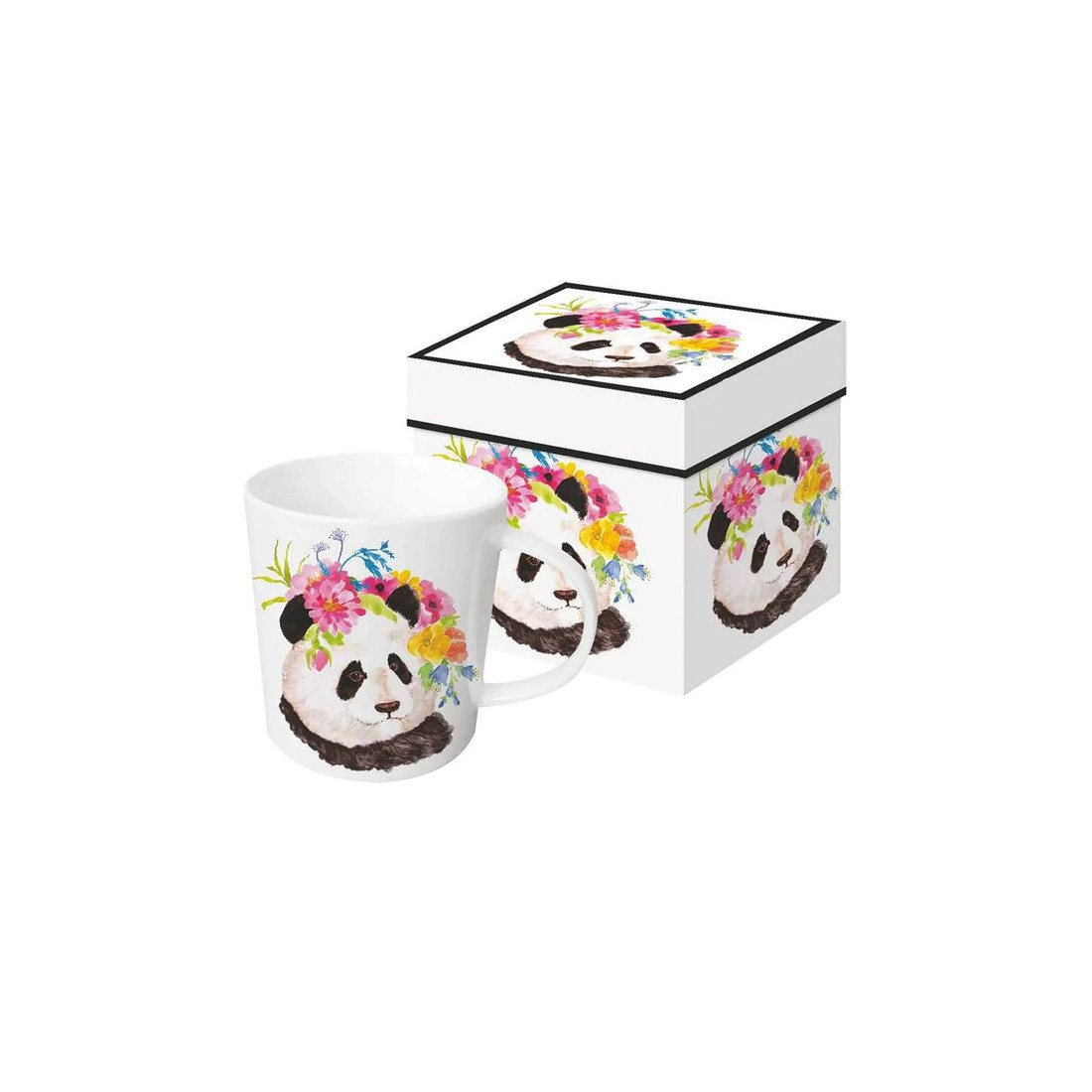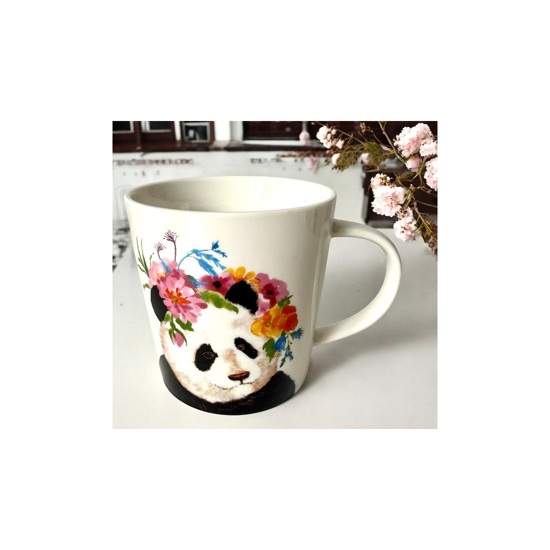 Kubek porcelanowy o pojemności 400 ml marki Paper Products Design z uroczą Pandą z kolorowymi kwiatkami na głowie. Wykonany z porcelany magnezowej, która łączy elegancję z trwałością. Poręczne ucho zapewnia wygodę użytkowania. Zapakowany w ozdobne pudełko o tym samym motywie – doskonały pomysł na prezent dla wielbicieli klasyki i delikatnych wzorów.