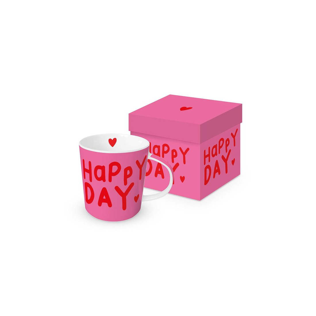 Kubek porcelanowy o pojemności 400 ml marki Paper Products Design w kolorze różowym z napisem „Happy Day”. Wykonany z porcelany magnezowej, która zapewnia trwałość i estetyczny wygląd. Poręczne ucho ułatwia komfortowe trzymanie. Zapakowany w ozdobne pudełko o tym samym motywie – doskonały pomysł na prezent dla pasjonatów relaksu nad wodą.