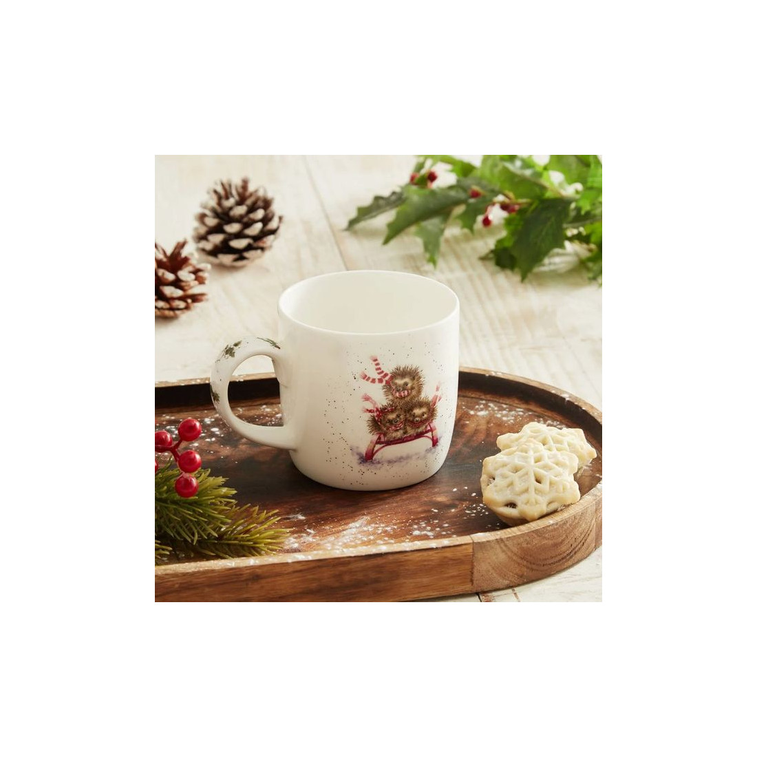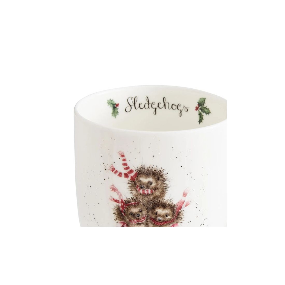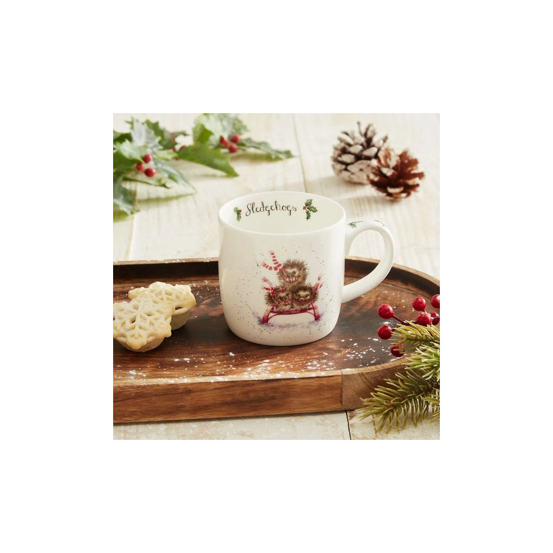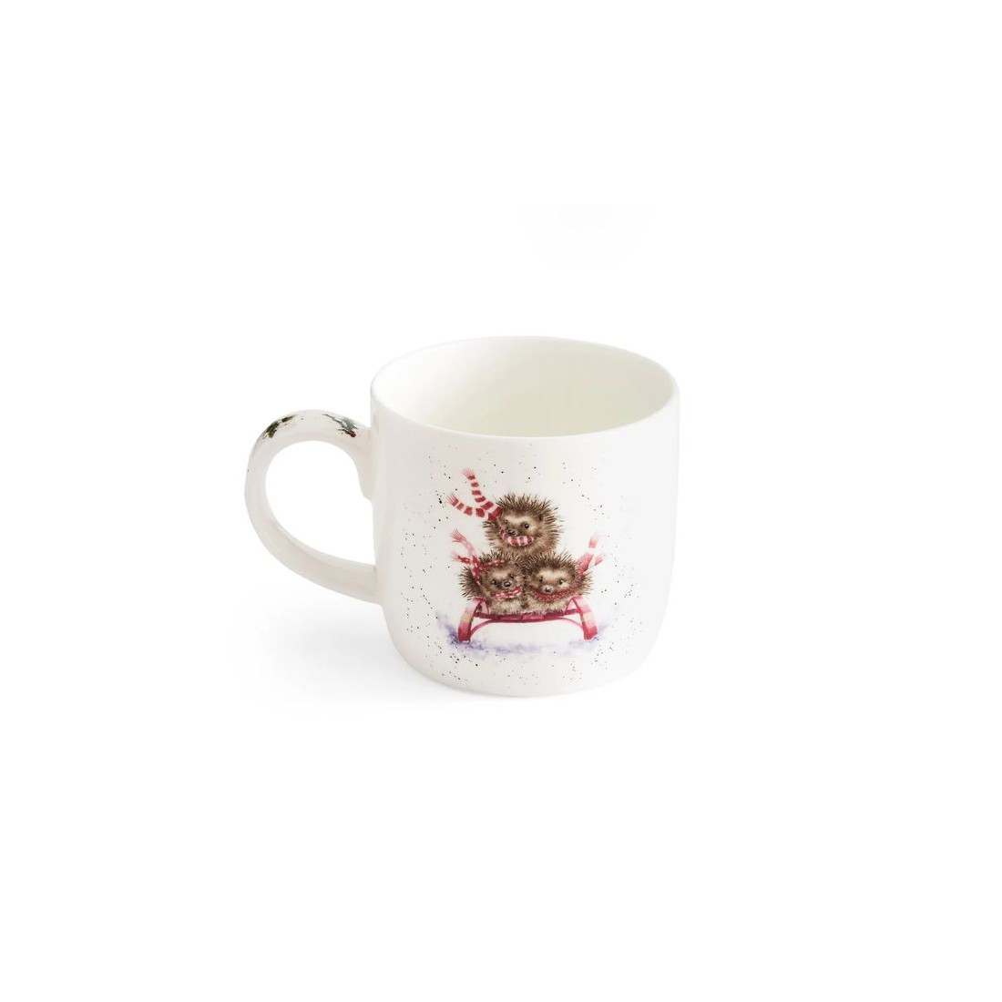 Kubek porcelanowy z kolekcji Wrendale Designs marki Royal Worcester to wspaniały dodatek do świątecznych chwil, który możesz podarować sobie lub bliskiej osobie. Kubek ozdobiony jest uroczymi akwarelowymi ilustracjami przedstawiającymi trzy zabawne jeże w szalikach zjeżdżają na sankach z ośnieżonej górki. Wewnątrz kubka znajduje się delikatny napis: „Sledgehogs”, a ucho zdobią delikatne detale w postaci gałązek ostrokrzewu. Kubek wykonany jest z najwyższej jakości porcelany kostnej, charakteryzującej się wyjątkową elegancją i trwałością. To wyjątkowy element zastawy, który wzbogaci domową kolekcję świątecznych kubków oraz sprawi radość każdemu, kto go otrzyma.